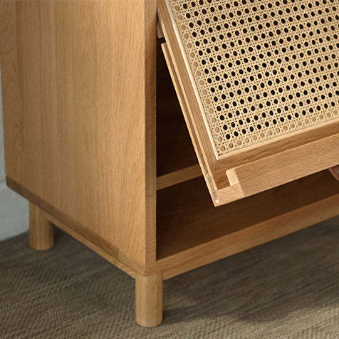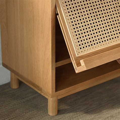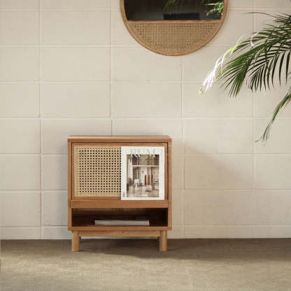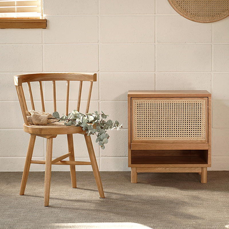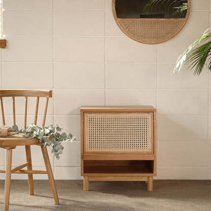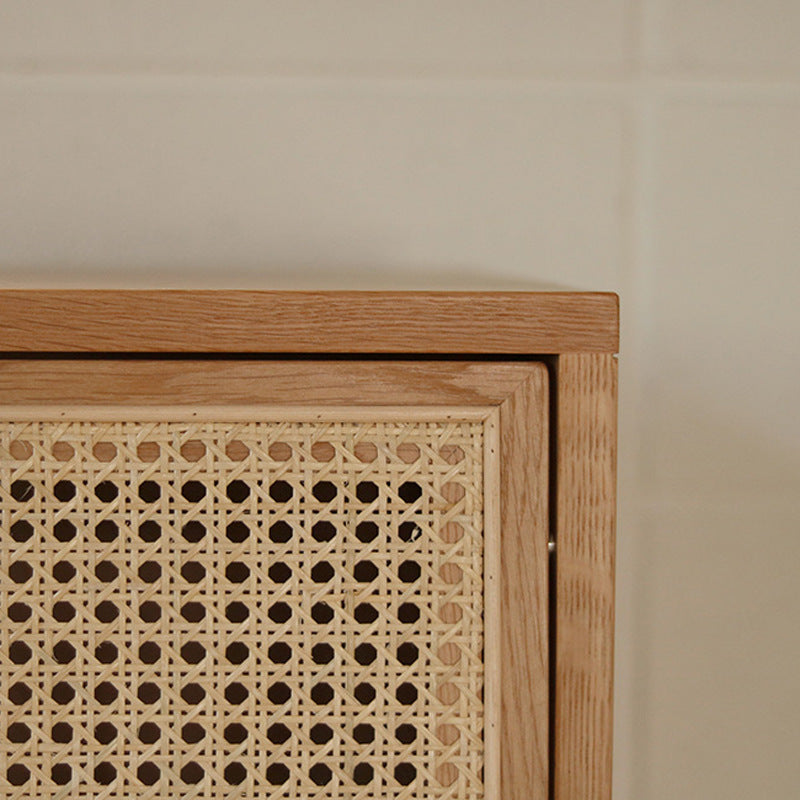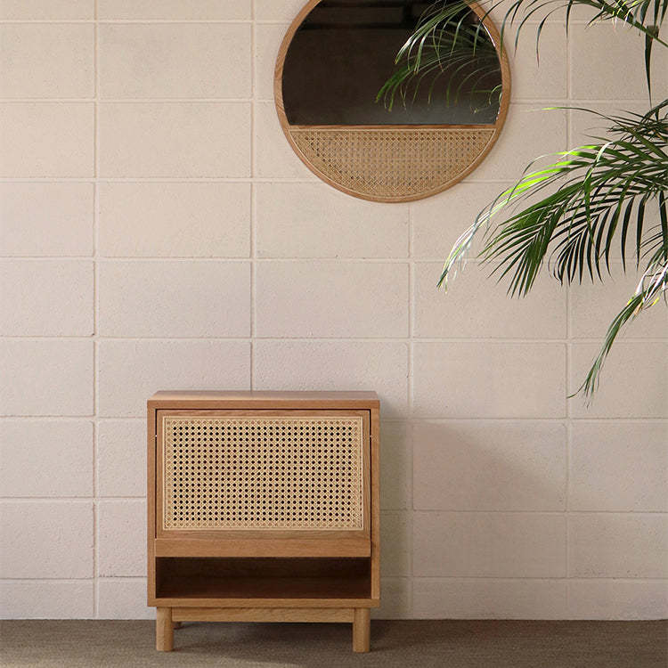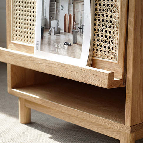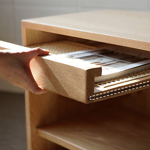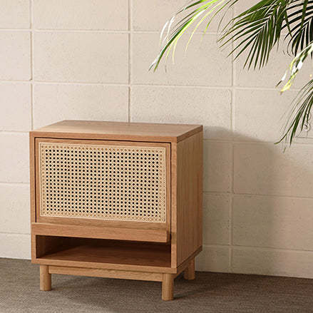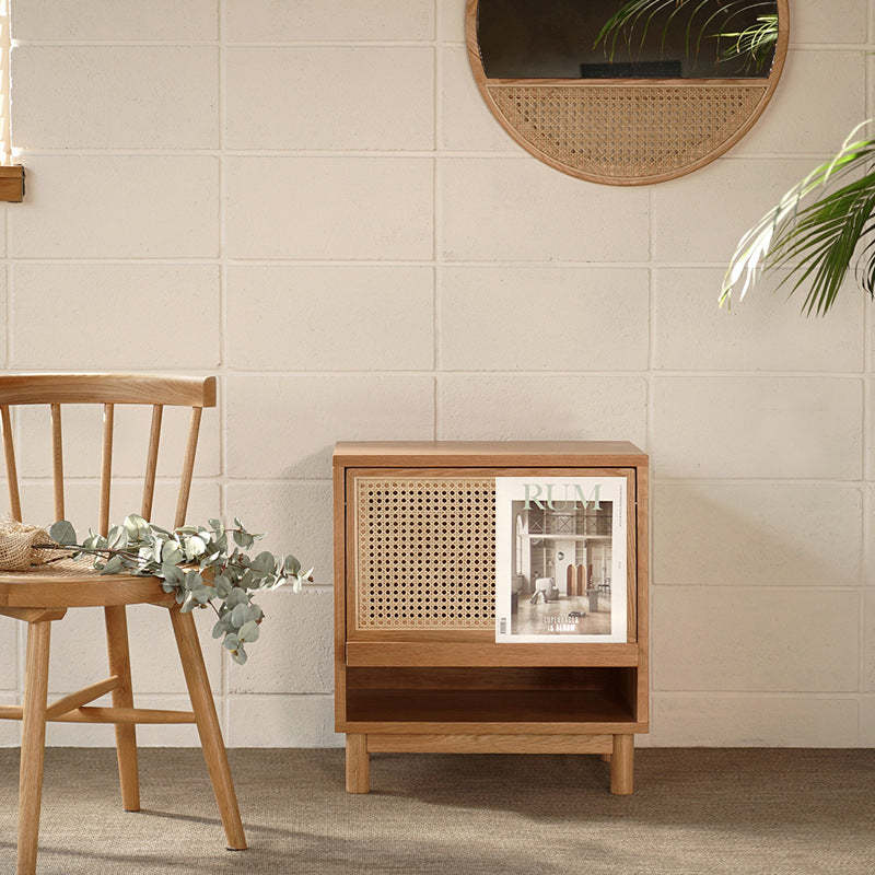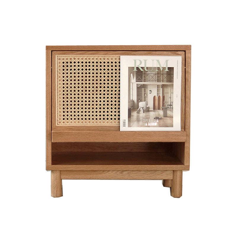 Contemporary Nordic Rectangular Wood Rattan End Table 1-Drawer For Living Room