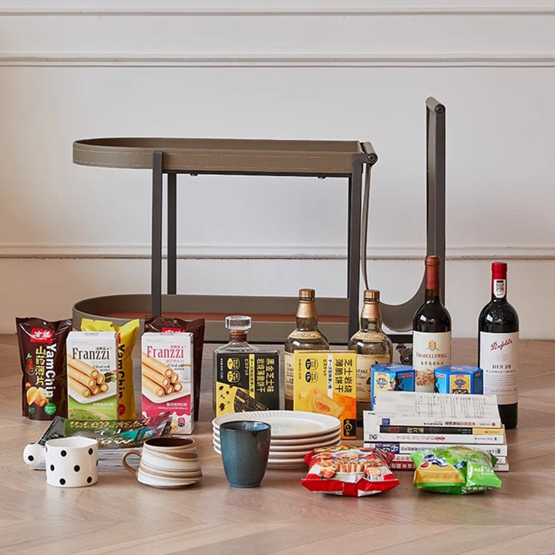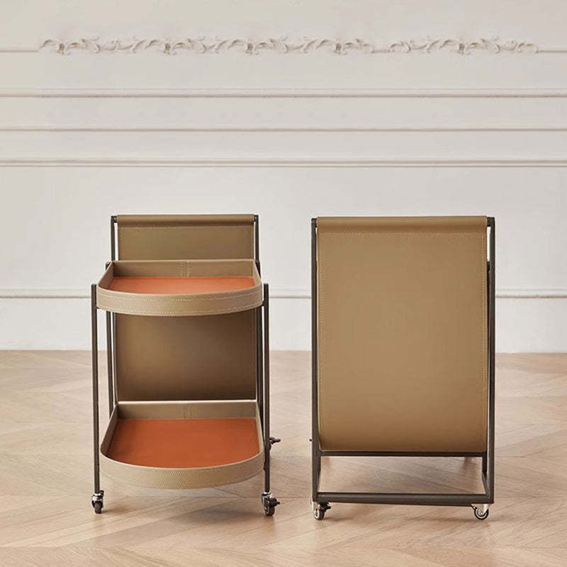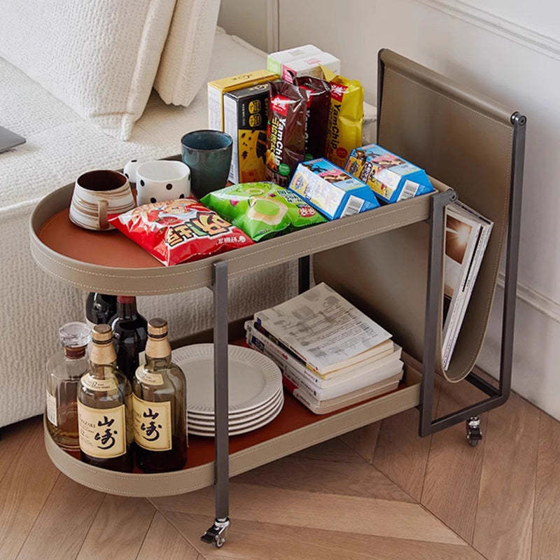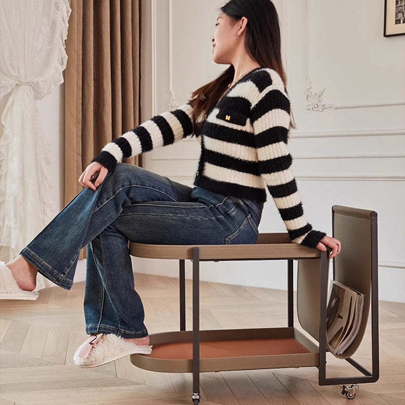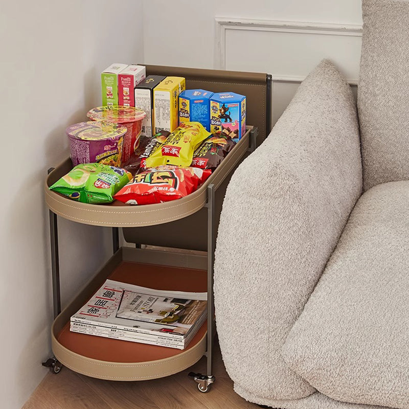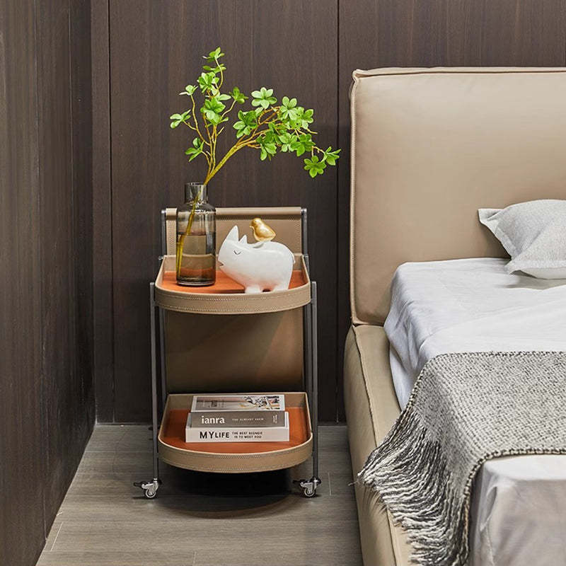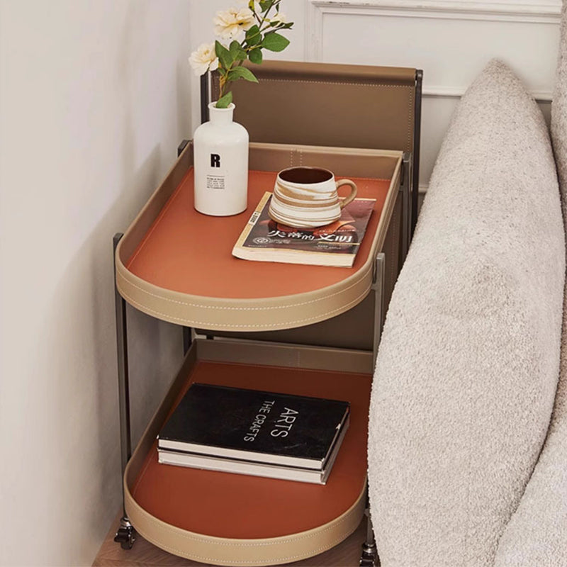 Contemporary Nordic Removable Rectangular Round Corner Stainless Steel Leather End Table 2-Tier For Living Room