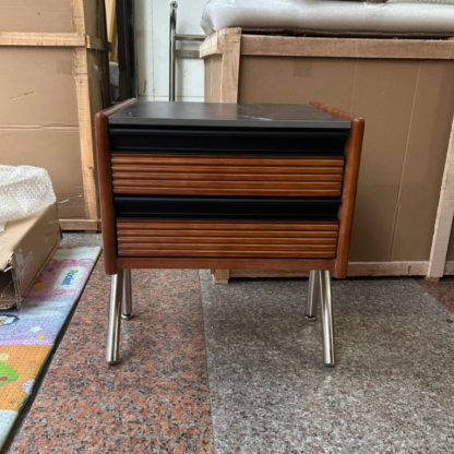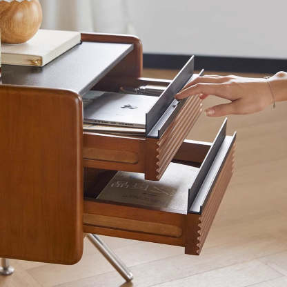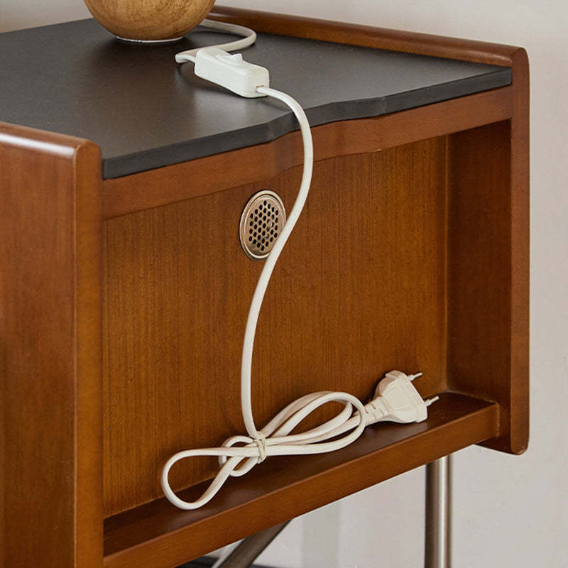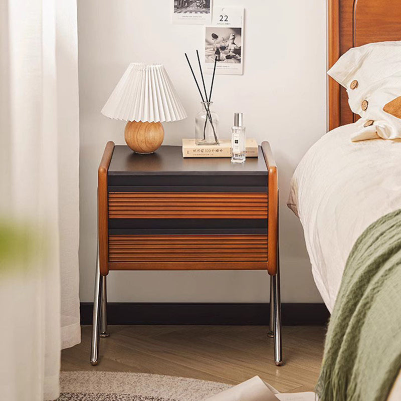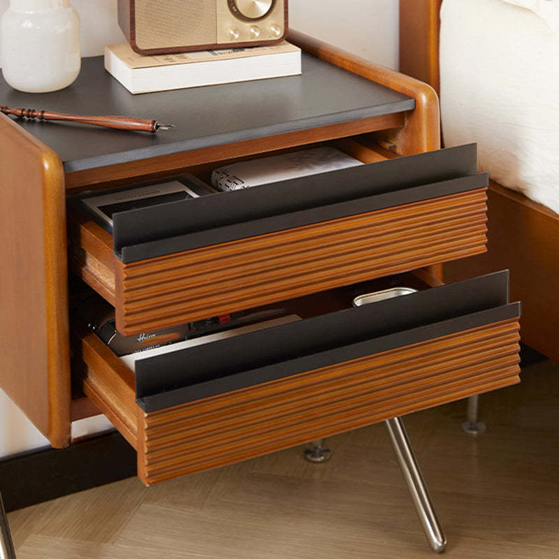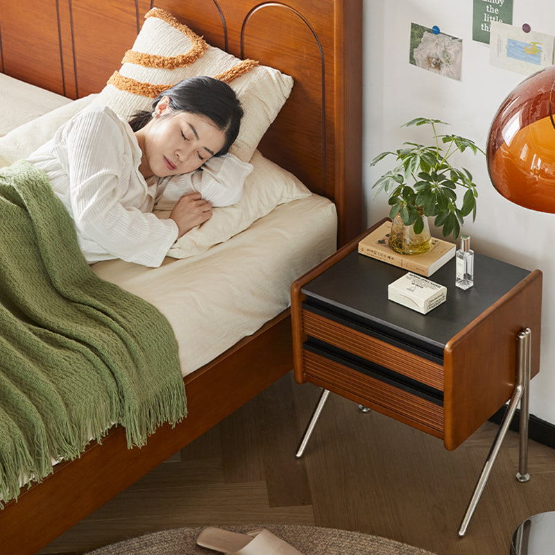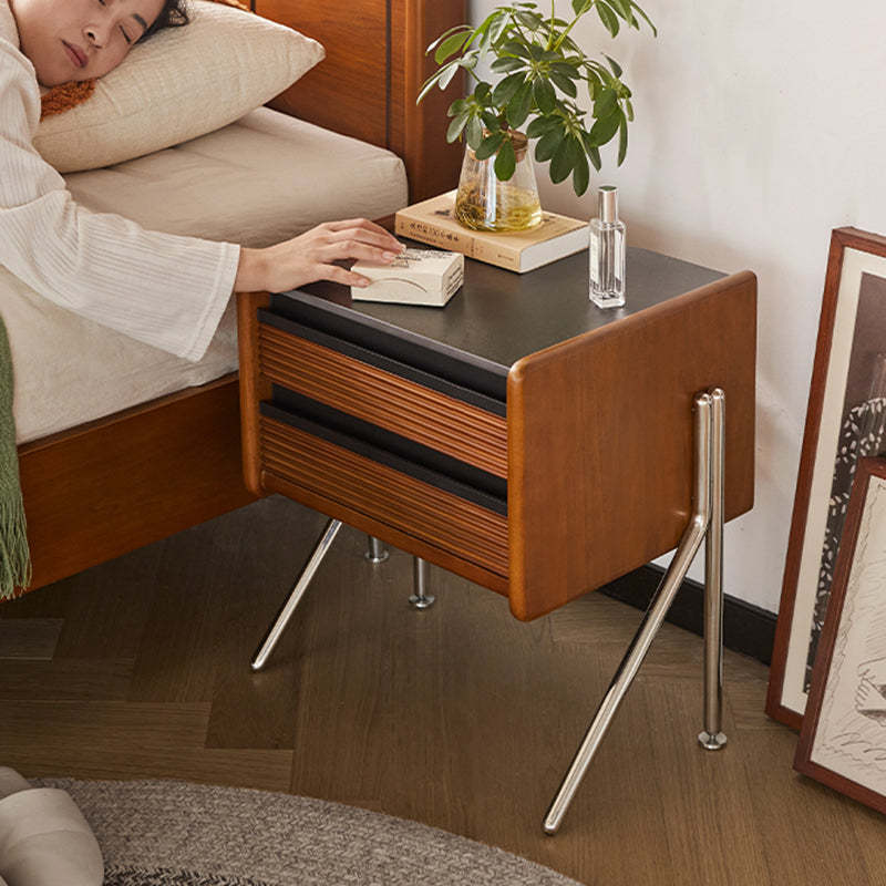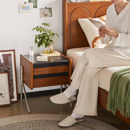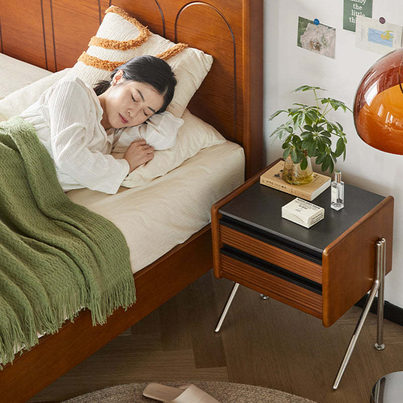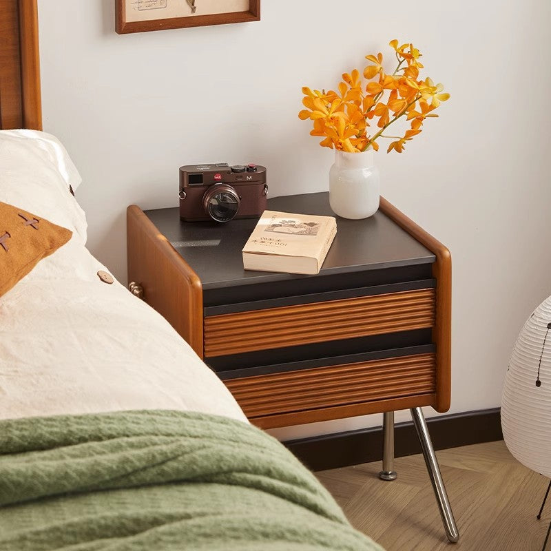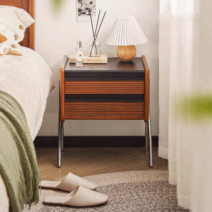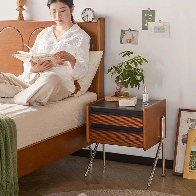 Made from rock slab. pine. boxwood. and stainless steel. this Nordic-style nightstand features a modern square shape and two smooth-sliding drawers. The warm wood finish blends effortlessly with contemporary bedrooms or living rooms. offering both function and style.
