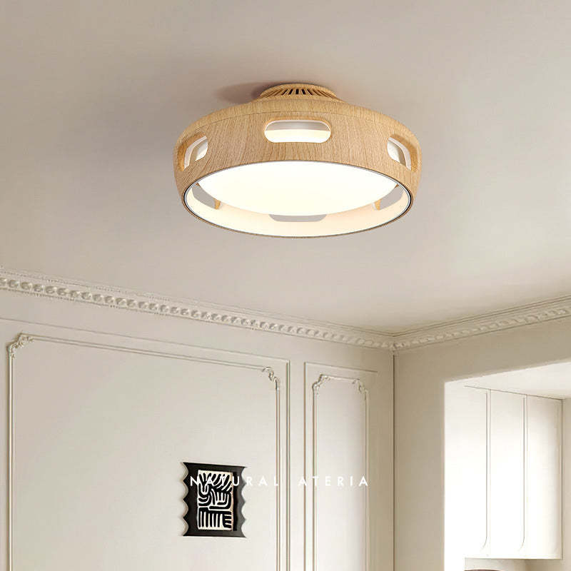Contemporary Nordic Round Bladeless PC Acrylic LED Semi-Flush Mount Ceiling Fan Light For Bedroom