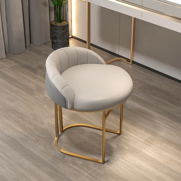 Contemporary Nordic Round Iron Leather Vanity Stool Backrest Armless For Bedroom