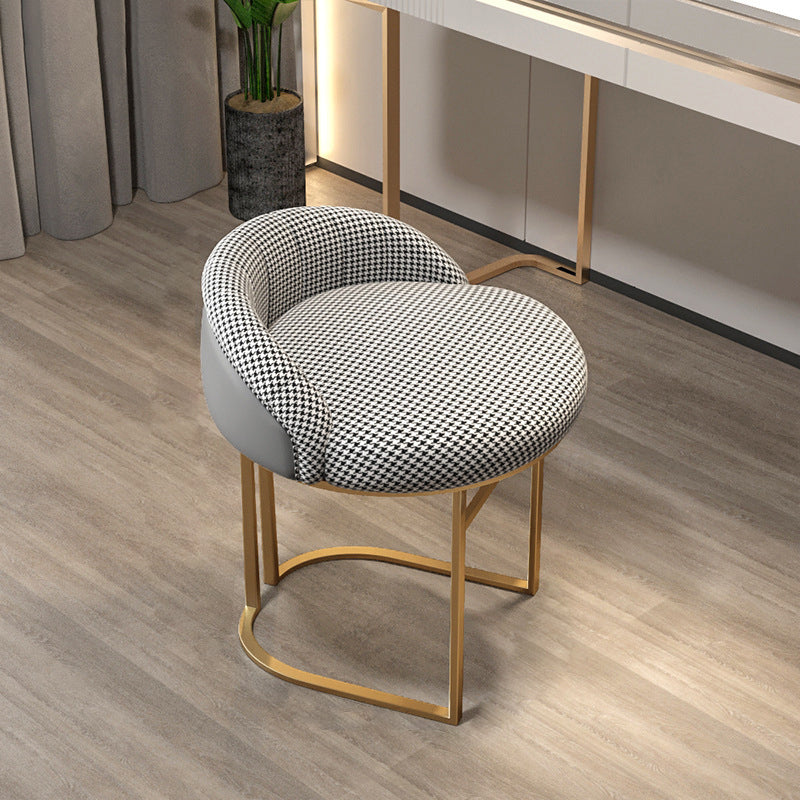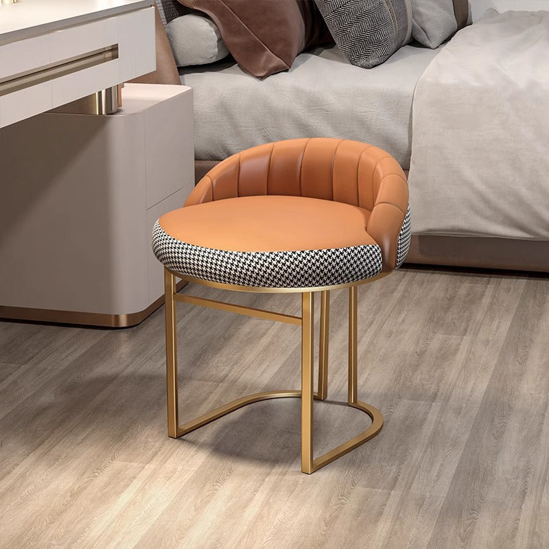 Contemporary Nordic Round Iron Leather Vanity Stool Backrest Armless For Bedroom