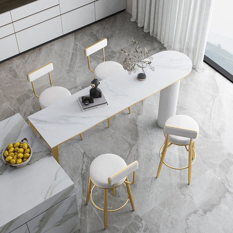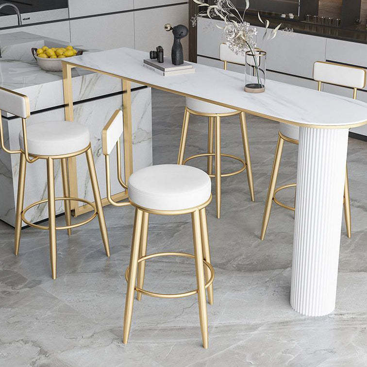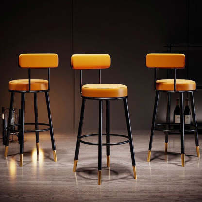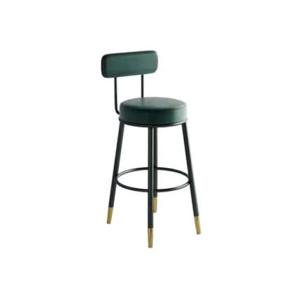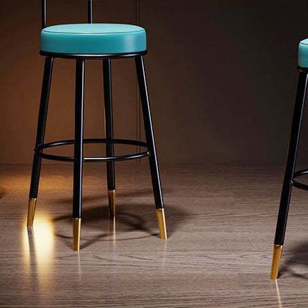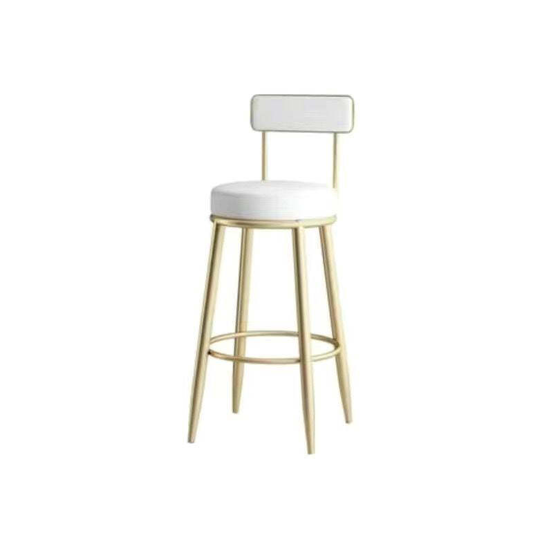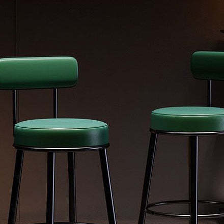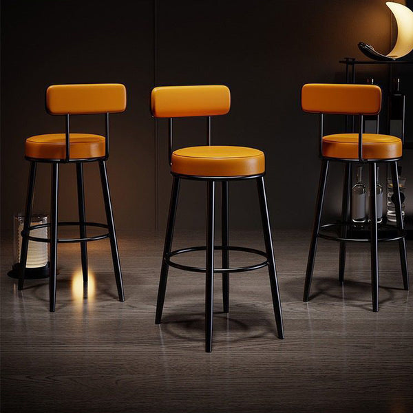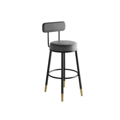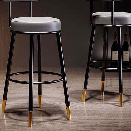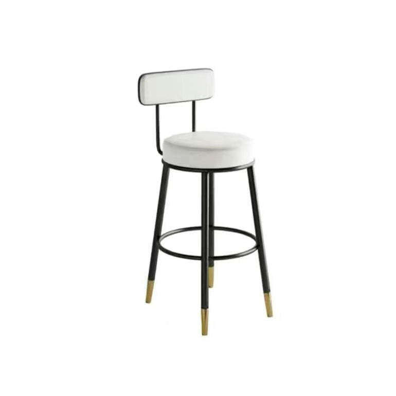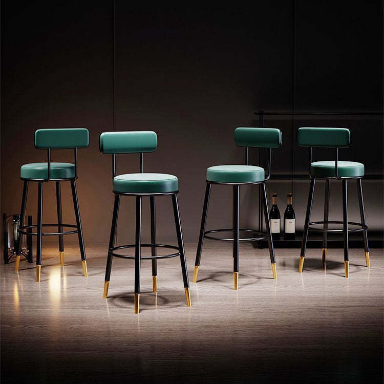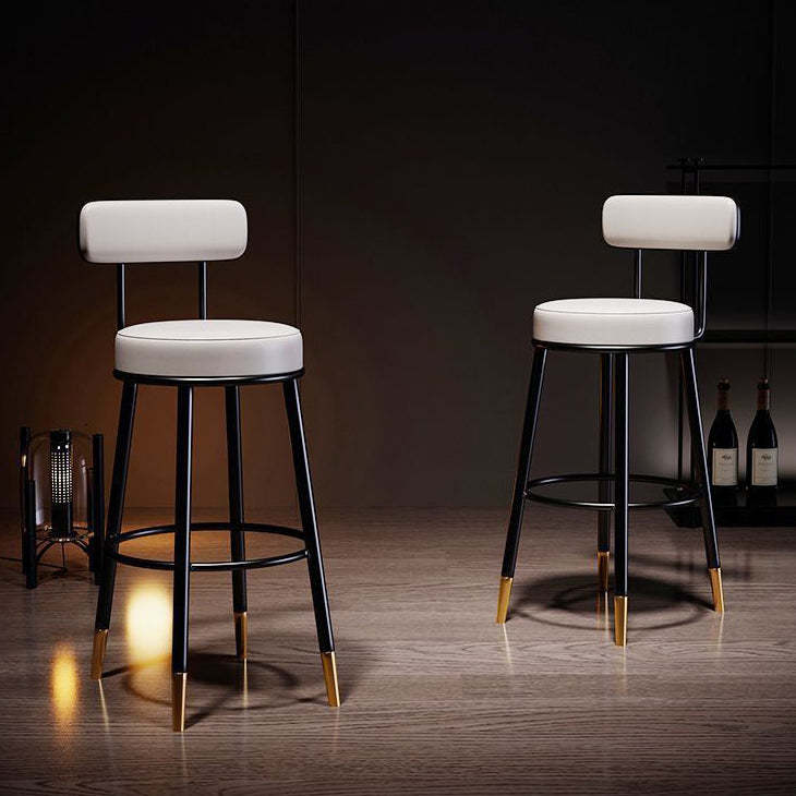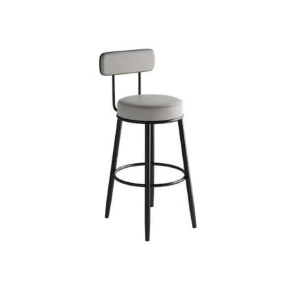 Contemporary Nordic Round Leather Upholstered Iron Bar Stool Backrest Footrest For Dining Room