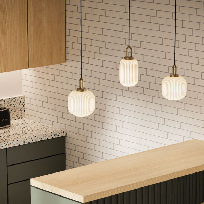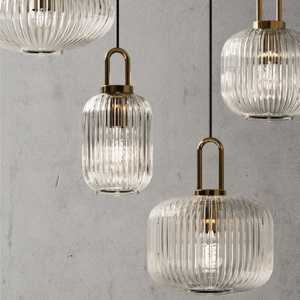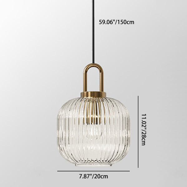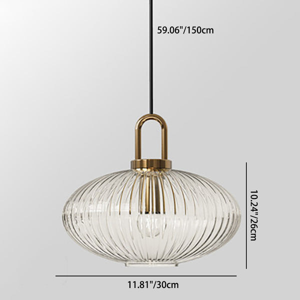 Contemporary Nordic Round Oval Pumpkin Stainless Steel Striped Glass 1-Light Pendant Light For Living Room