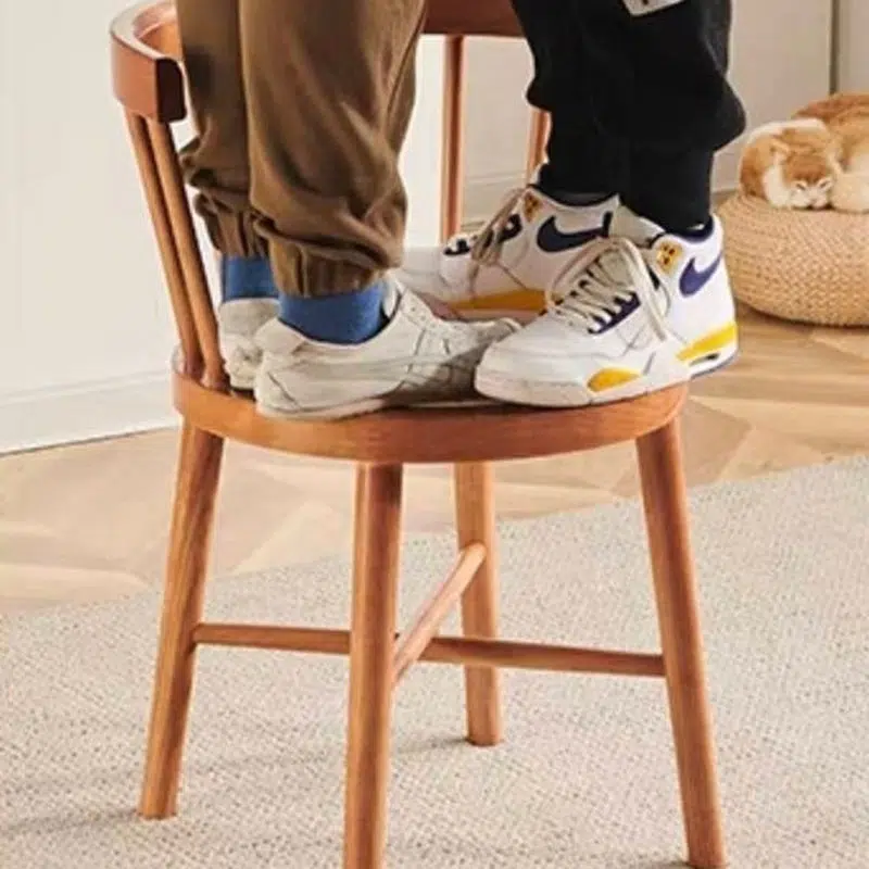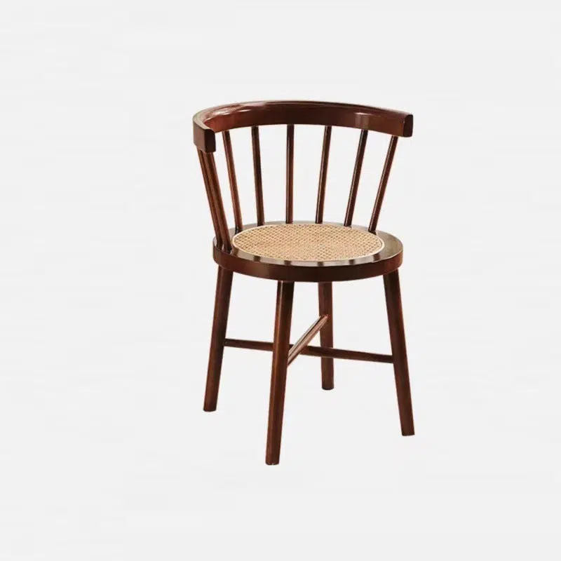 Contemporary Nordic Round Rubberwood Rattan Dining Chair Backrest For Dining Room
