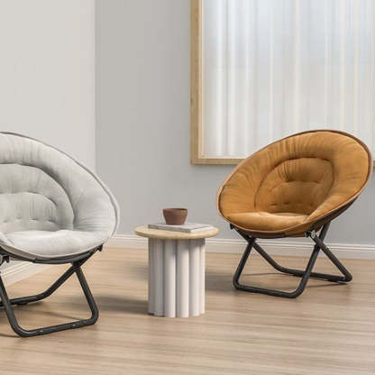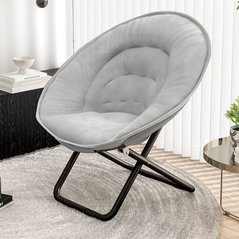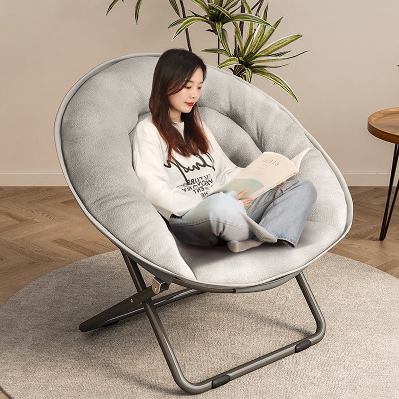 Contemporary Nordic Round Velvet X-Shaped Carbon Steel Frame Foldable Recliner Backrest For Living Room