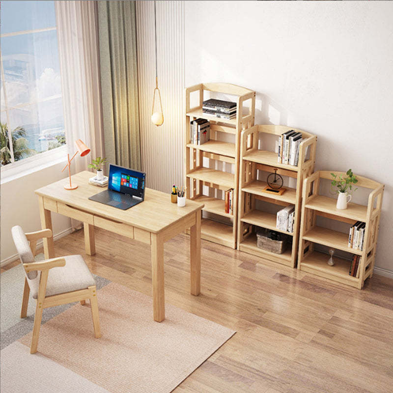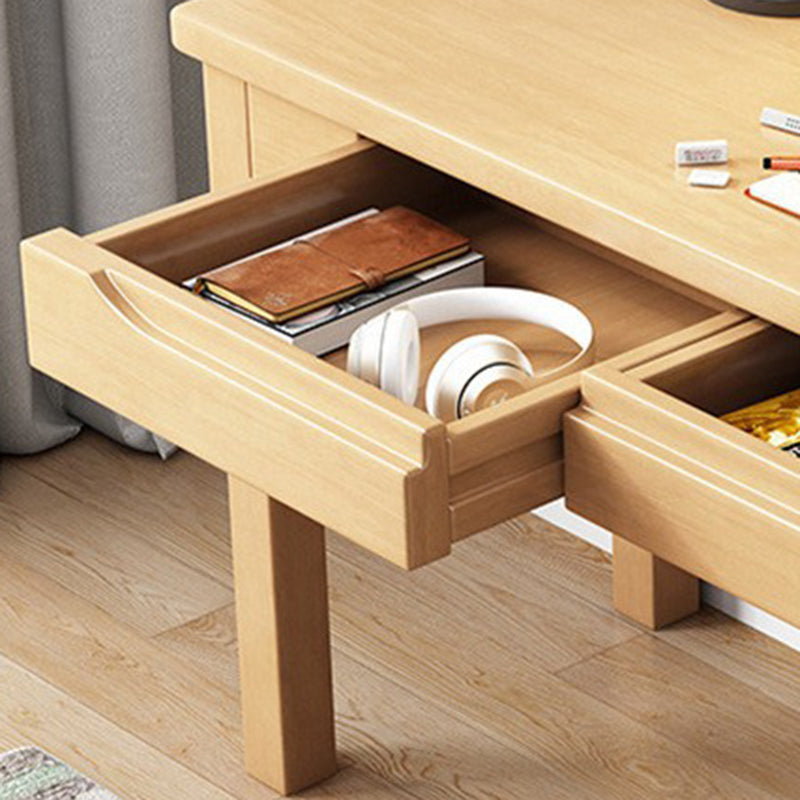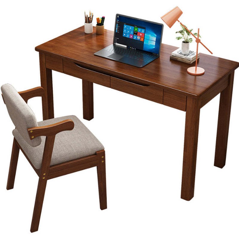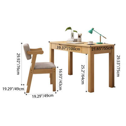 Contemporary Nordic Rubber Wood Pine Wood Rectangular Desk & Chair Set 2-Drawer For Study