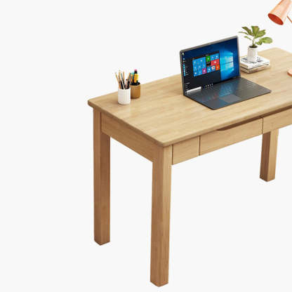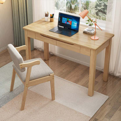 Crafted from solid rubberwood in natural. walnut. and white finishes. this minimalist Nordic-style desk features a clean rectangular design with two built-in drawers for convenient storage. Ideal for small spaces. it's perfect for home offices. bedrooms. or study rooms��and can be paired with a matching chair for a complete. cohesive look.