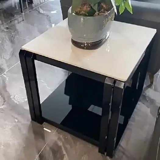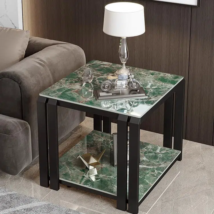 Bring modern Nordic elegance to your living room with this square side table. crafted from durable porcelain slab and metal. Featuring a stylish two-tier design. it comes in black. white. green. and gray finishes. offering exceptional resistance to scratches. stains. and heat for effortless everyday use.