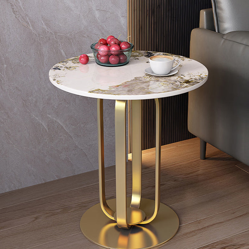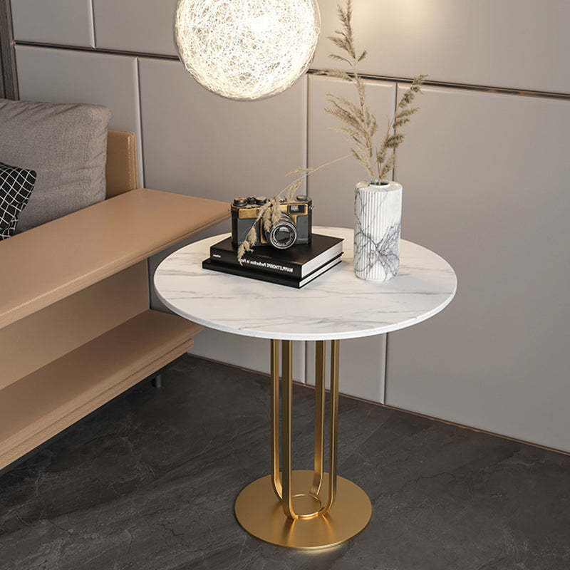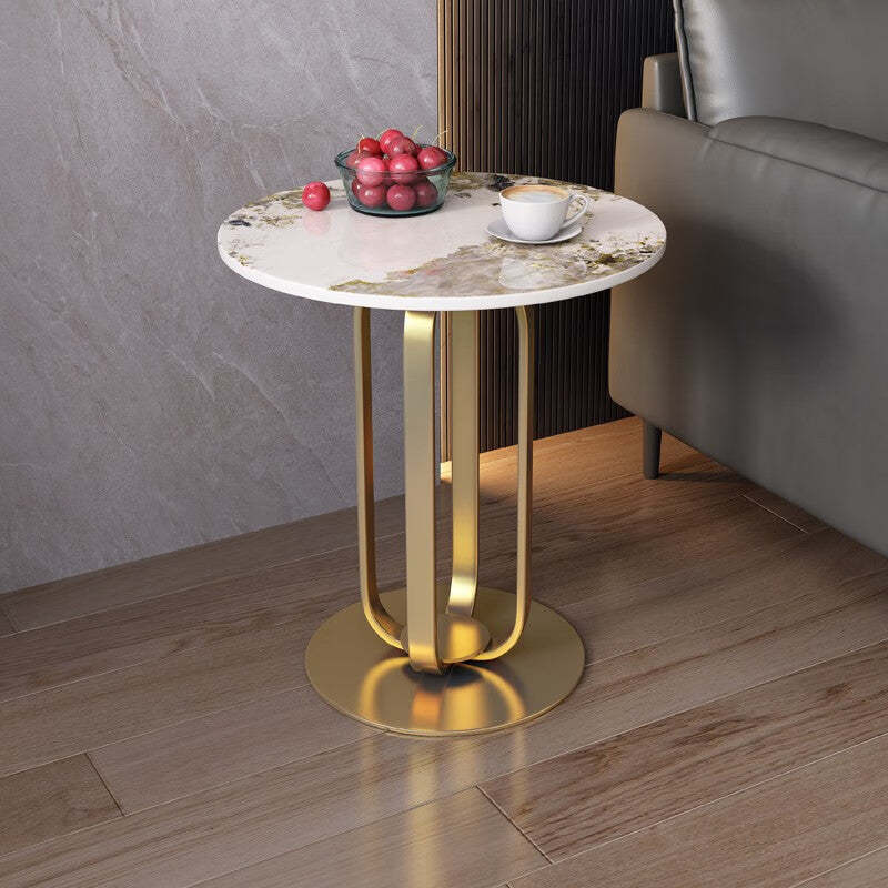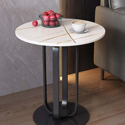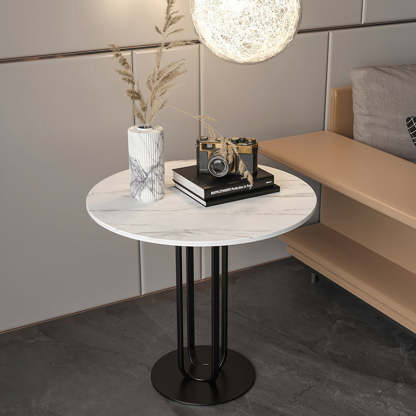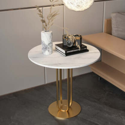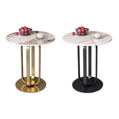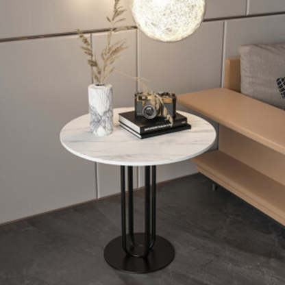 This modern Nordic-style round side table features a sleek slab top with optional gold stainless steel or black carbon steel legs. With its integrated tray design and elegant black. white. and gold tones. it adds a touch of minimalist luxury to living rooms or bedrooms.