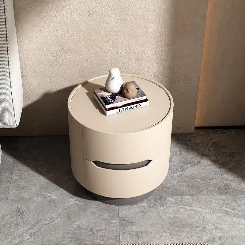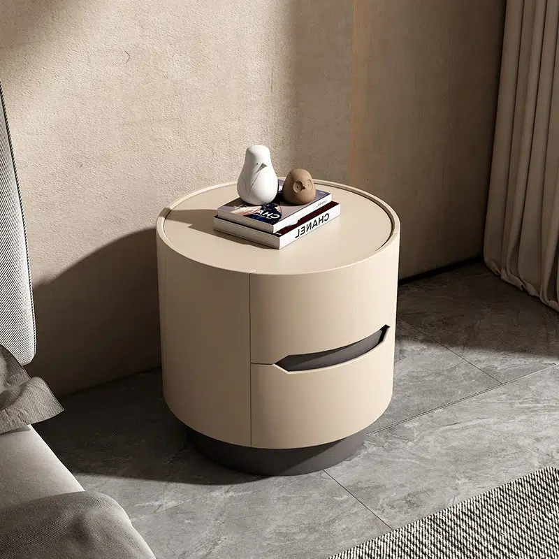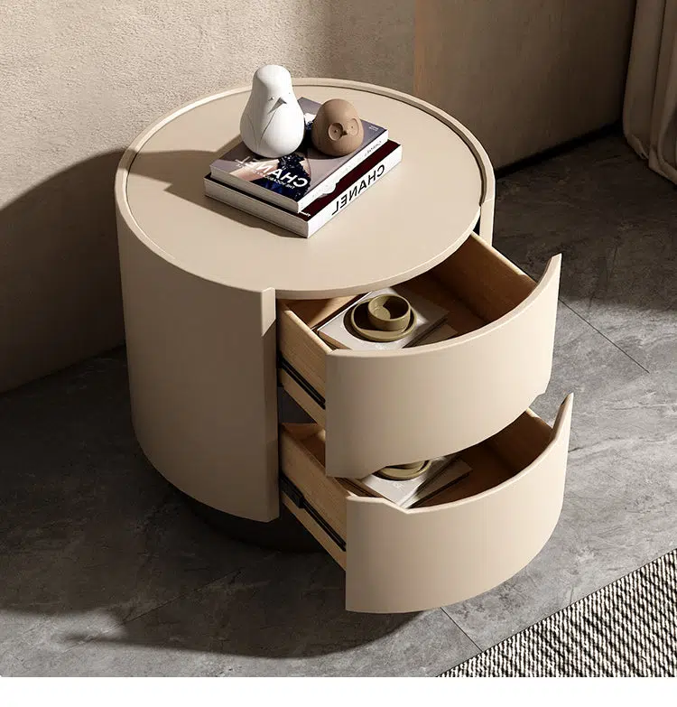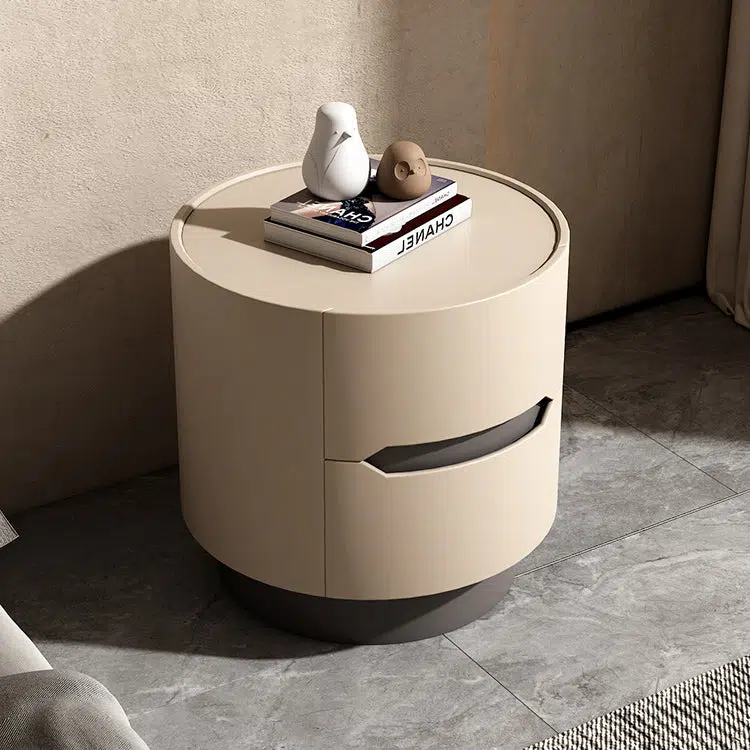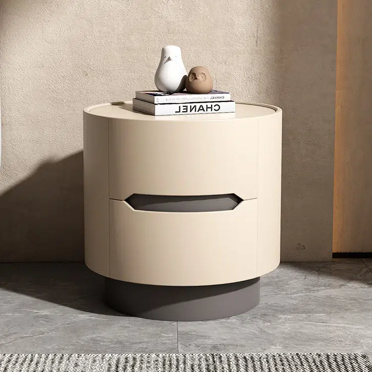 Contemporary Nordic Solid Wood Round Top Nightstand 2-Drawer Storage Cabinet For Bedroom