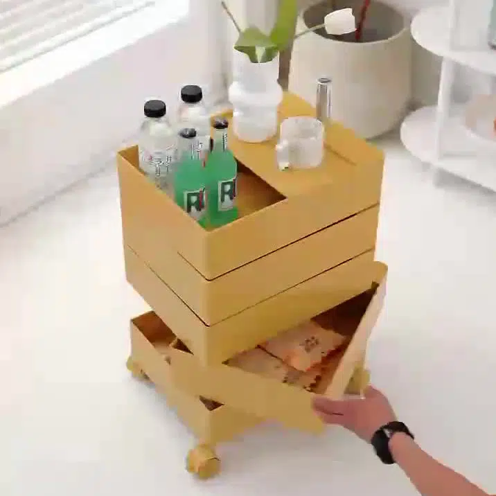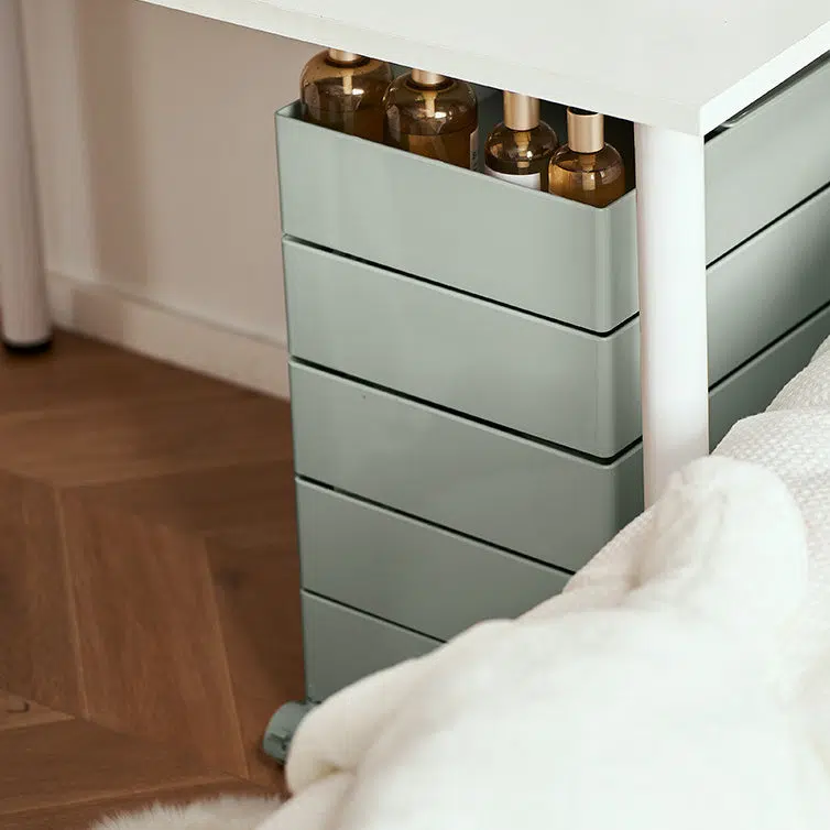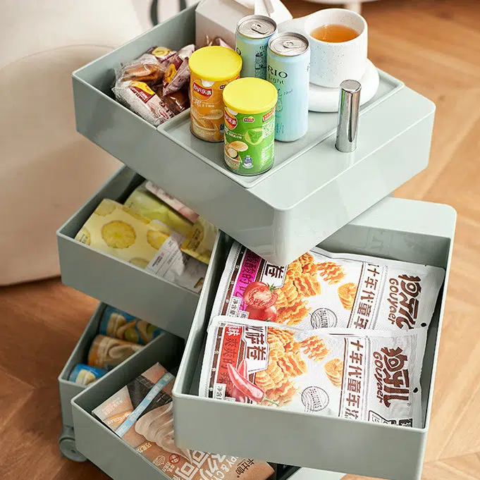 Contemporary Nordic Square ABS Rotating Drawer End Table 5-Tier Casters For Bedroom