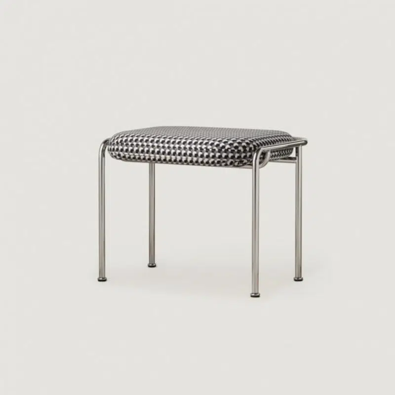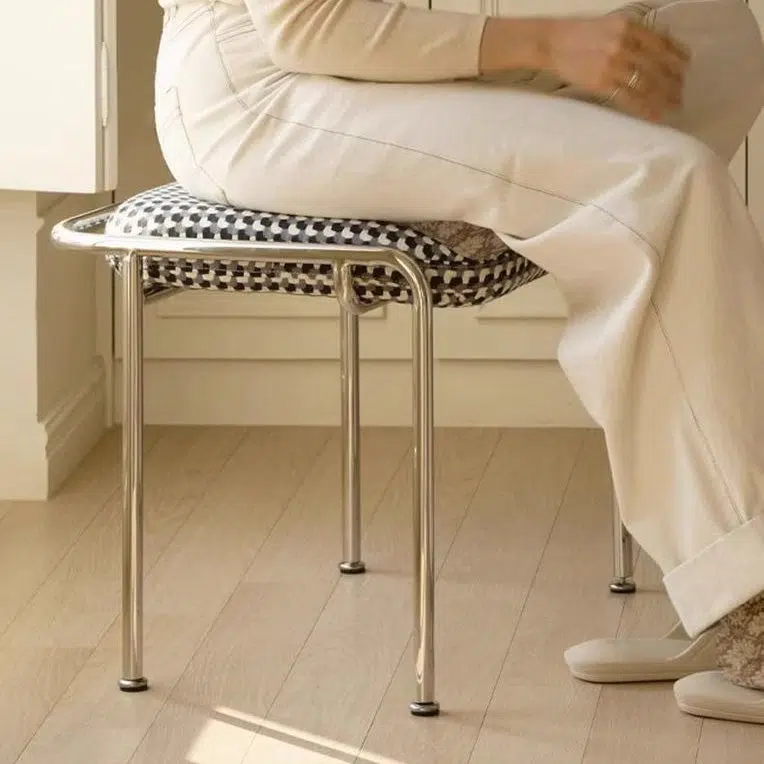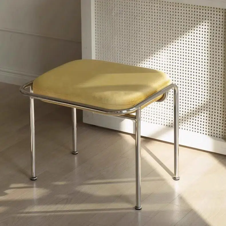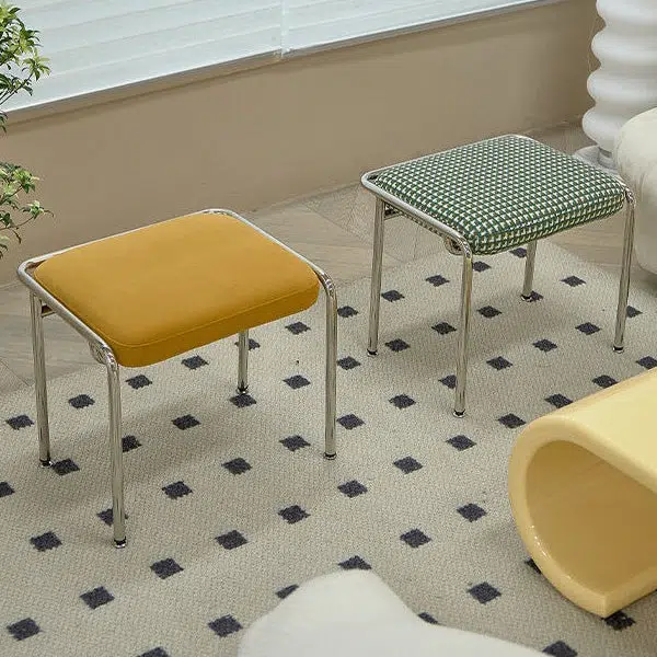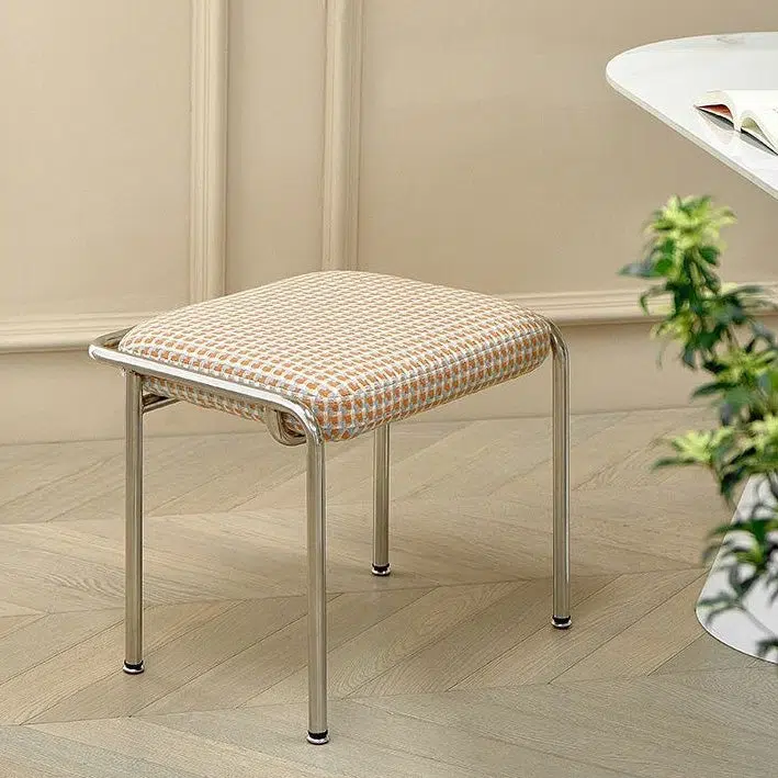 Contemporary Nordic Square Cotton Linen Carbon Steel Stainless Steel Vanity Stool Backless Armless For Bedroom