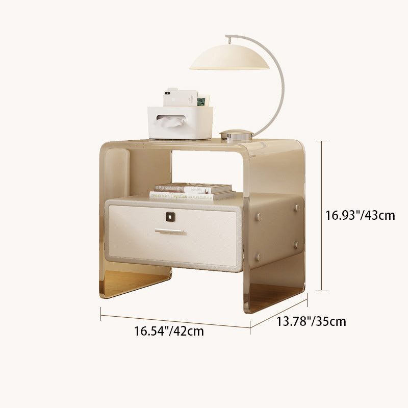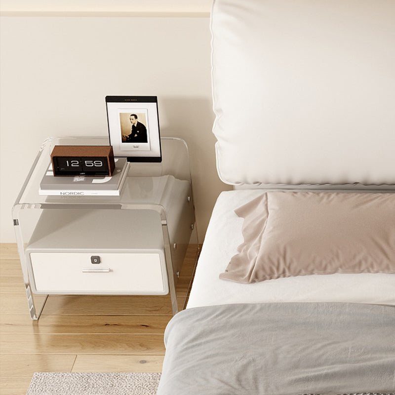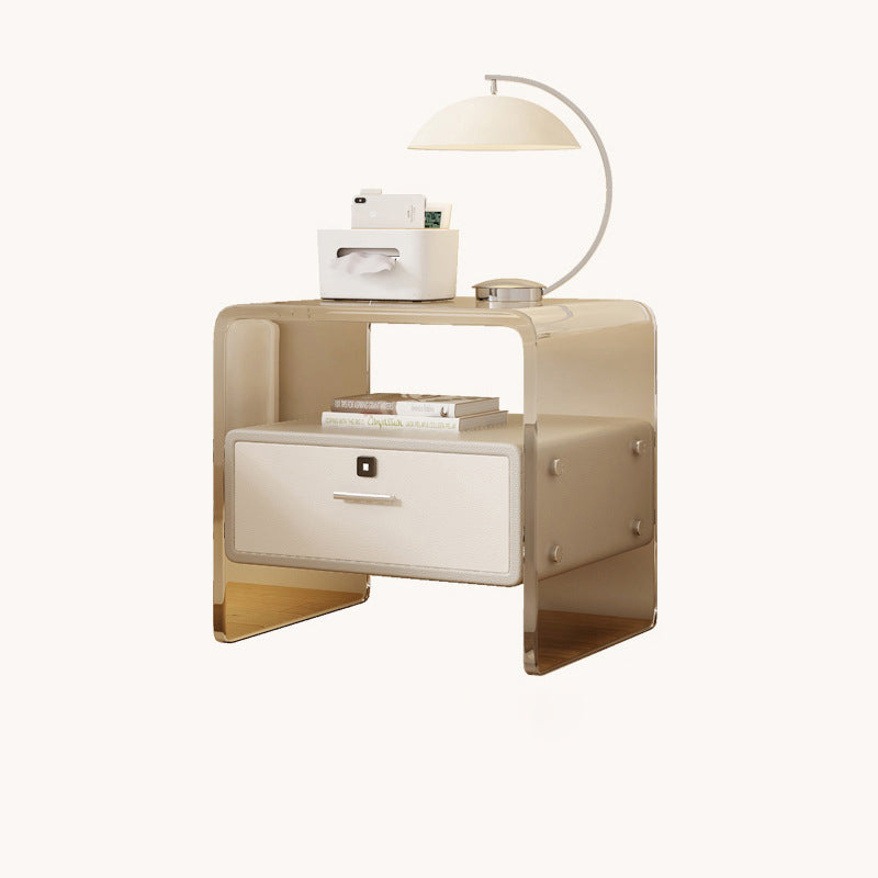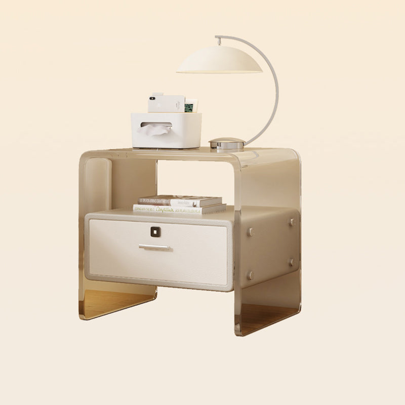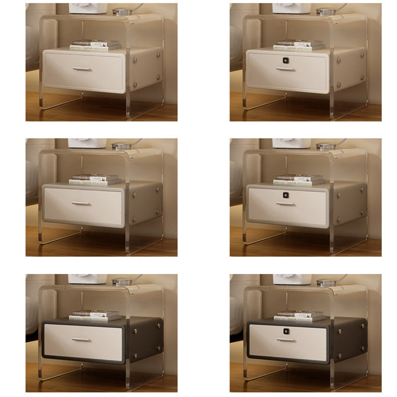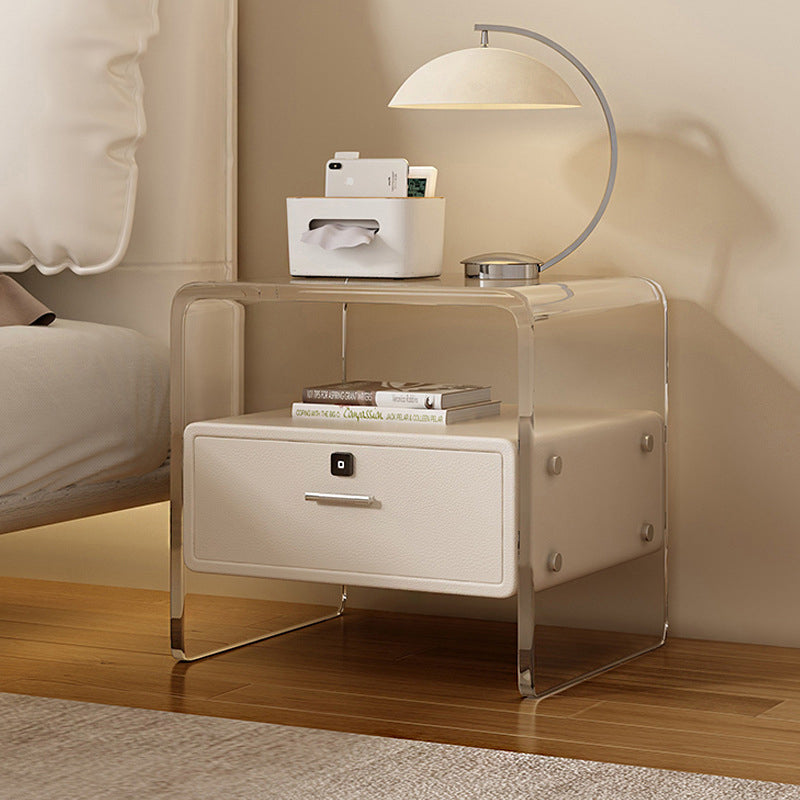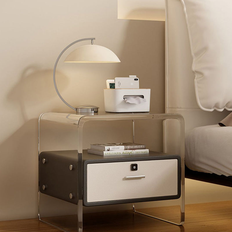 Contemporary Nordic Square Cube Acrylic Leather Solid Wood Nightstand 1 – Drawer For Bedroom