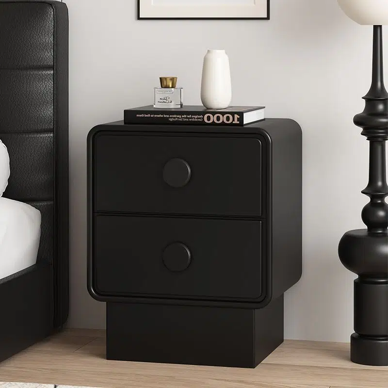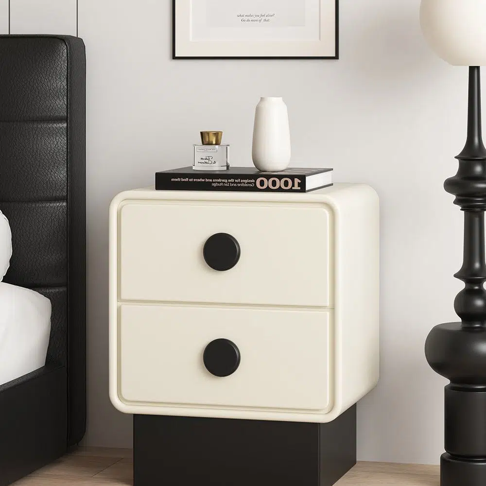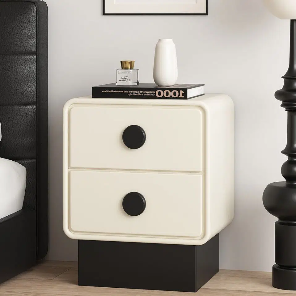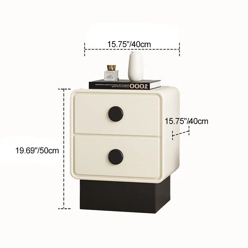 Contemporary Nordic Square Cube Solid Wood Multilayer Board Leather Nightstand 2 – Drawer For Bedroom