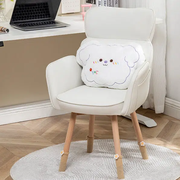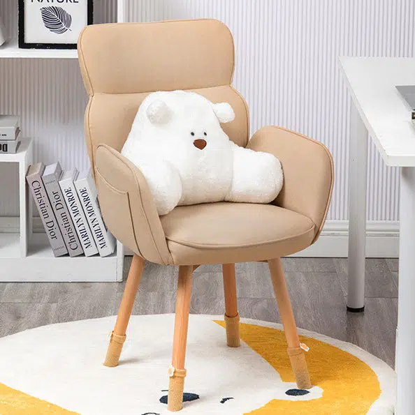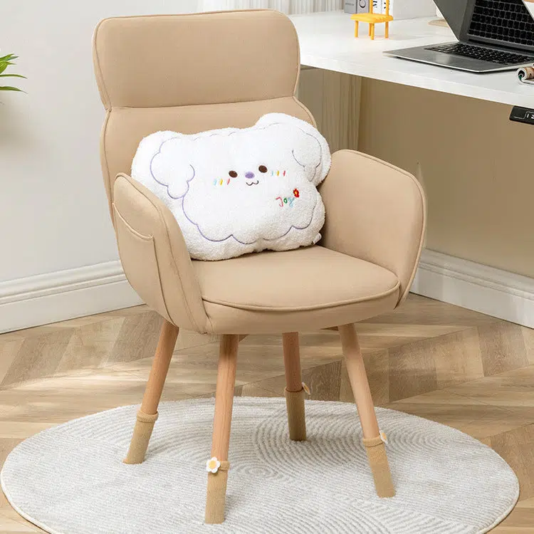 Contemporary Nordic Square Fabric Upholstered Solid Wood Legs Vanity Stool Backrest Armrest For Bedroom