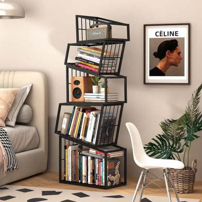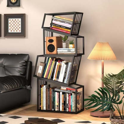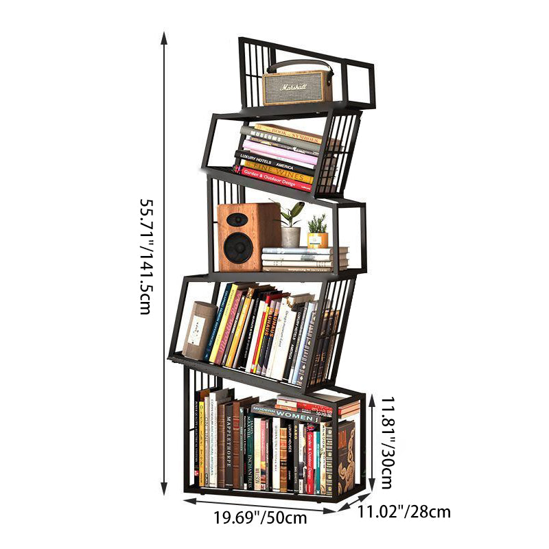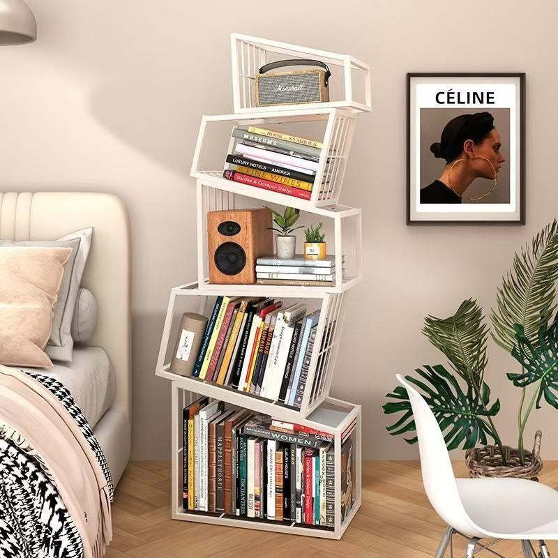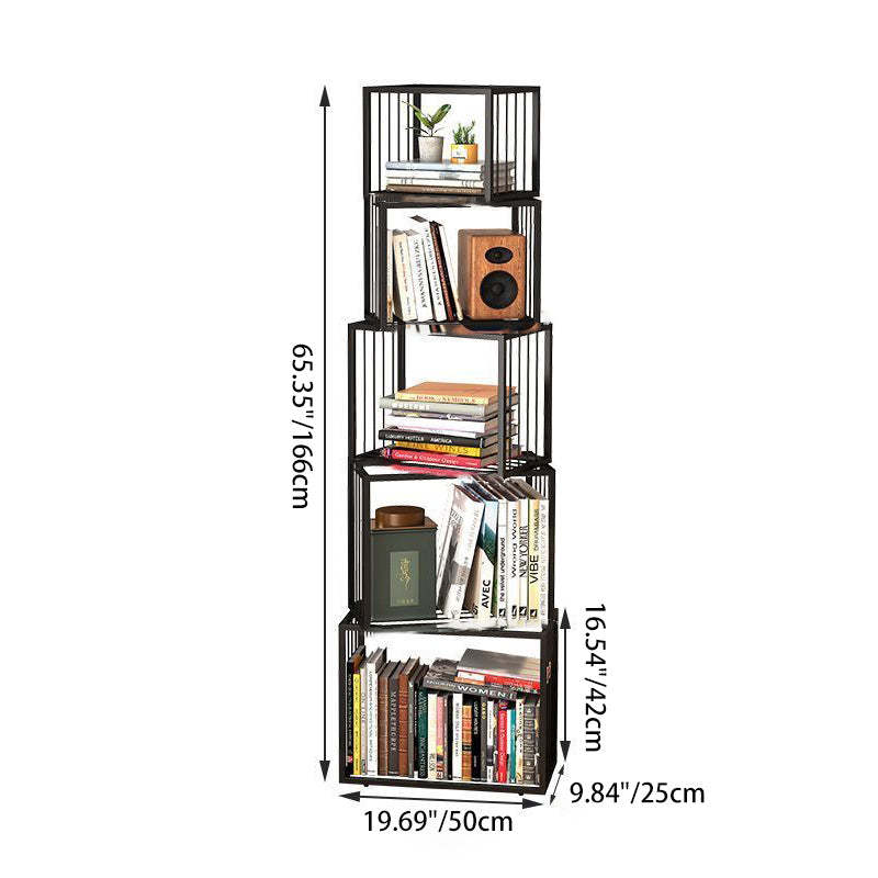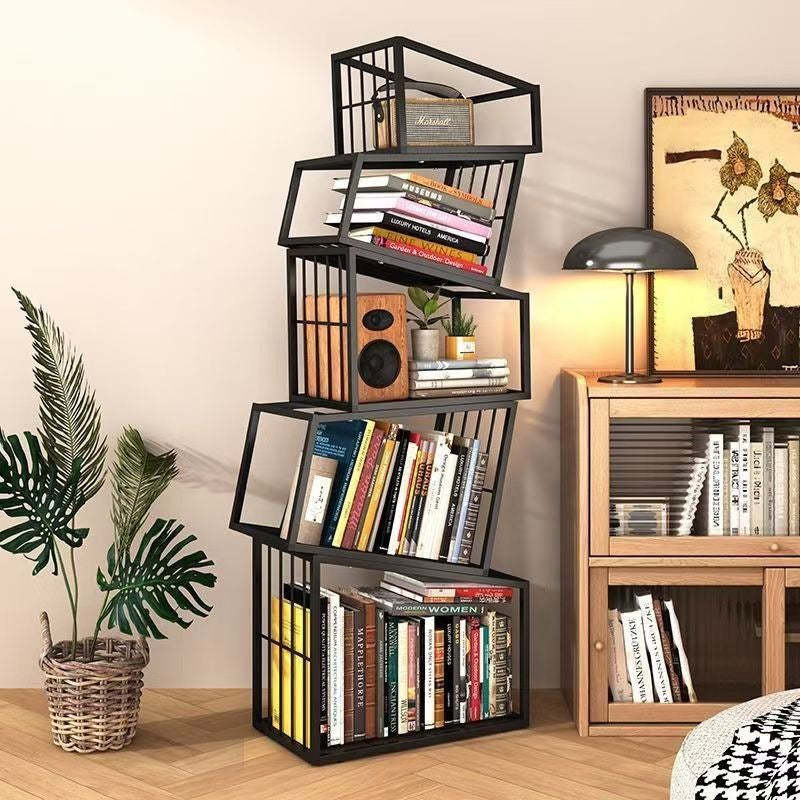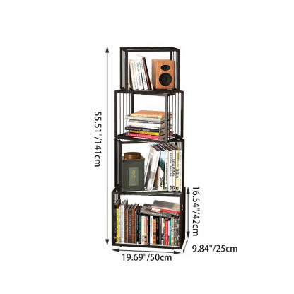 Contemporary Nordic Square Frame Full Iron Storage Cabinets Bookshelf 3/4/5 - Tier For Living Room