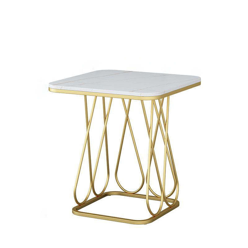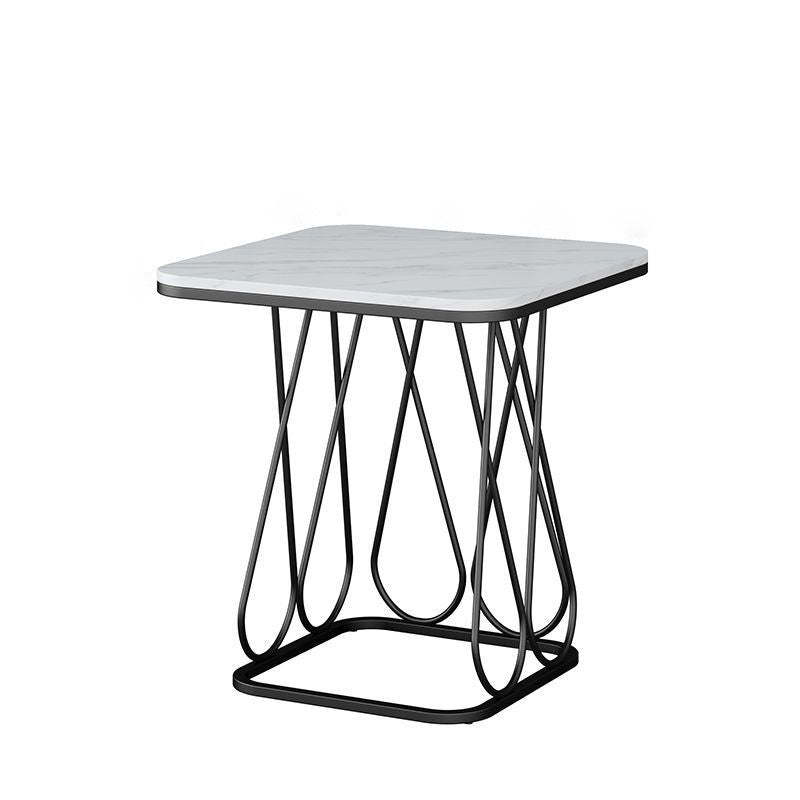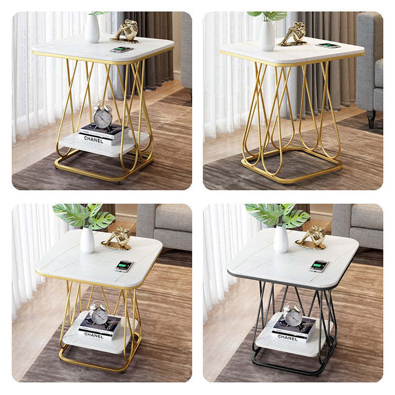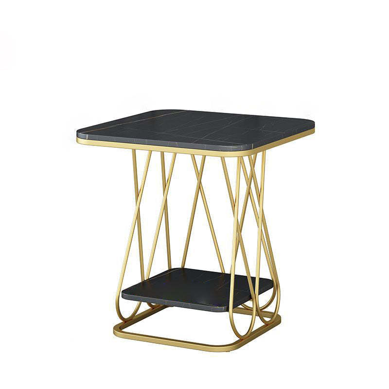 Contemporary Nordic Square Geometric Rock Slab Iron End Table 1/2-Tier For Living Room