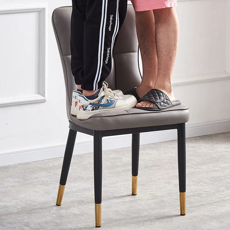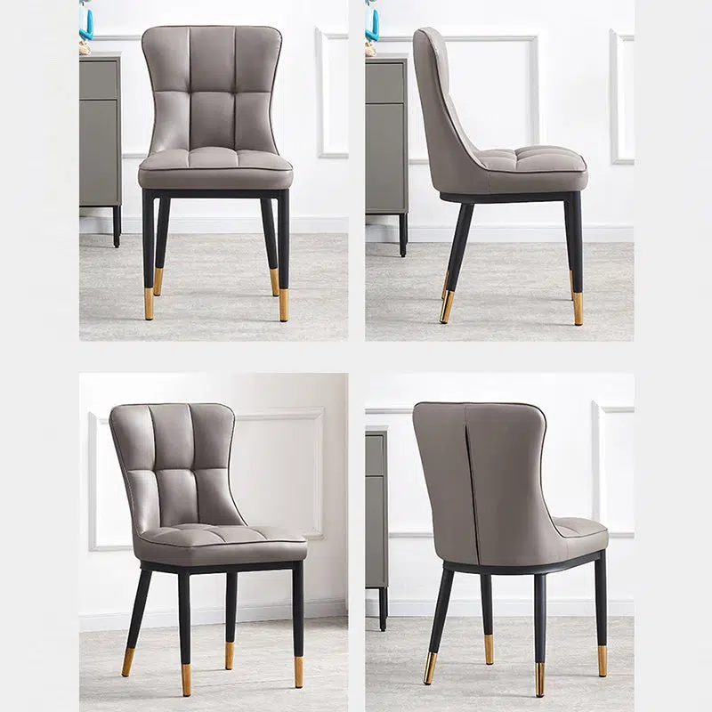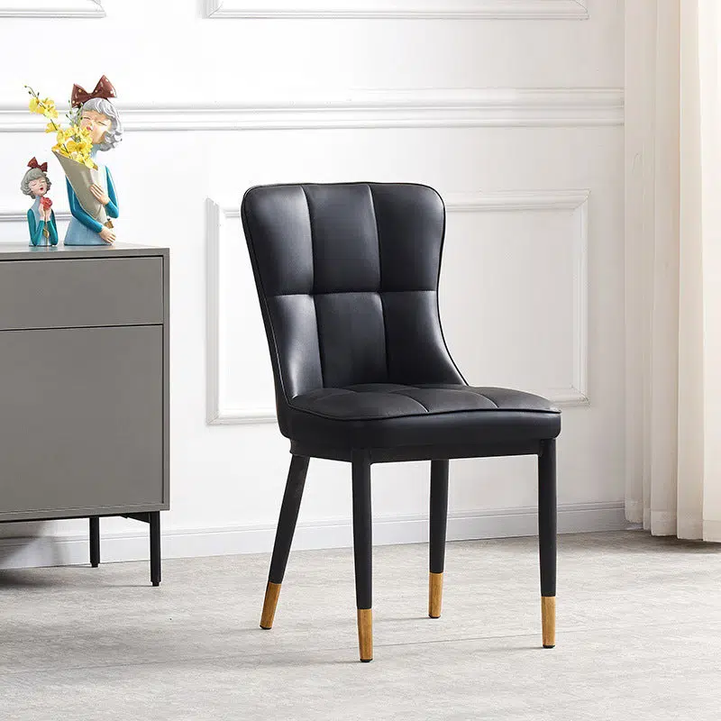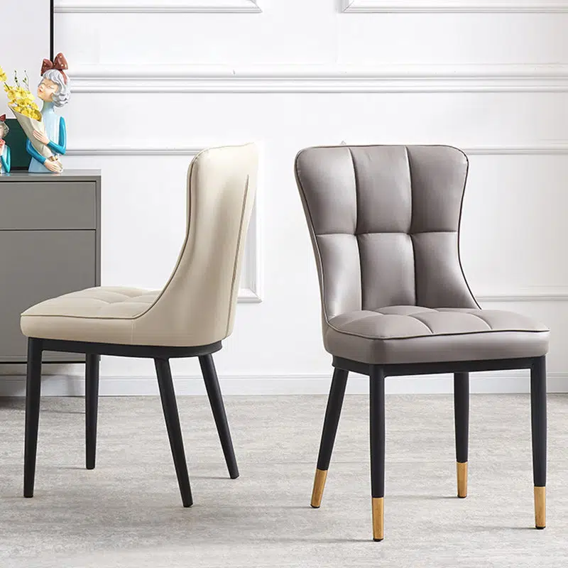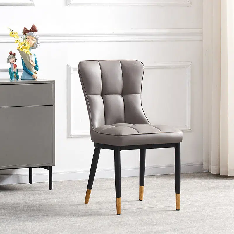 Contemporary Nordic Square Lattice Upholstered Leather Carbon Steel Dining Chair Backrest For Dining Room