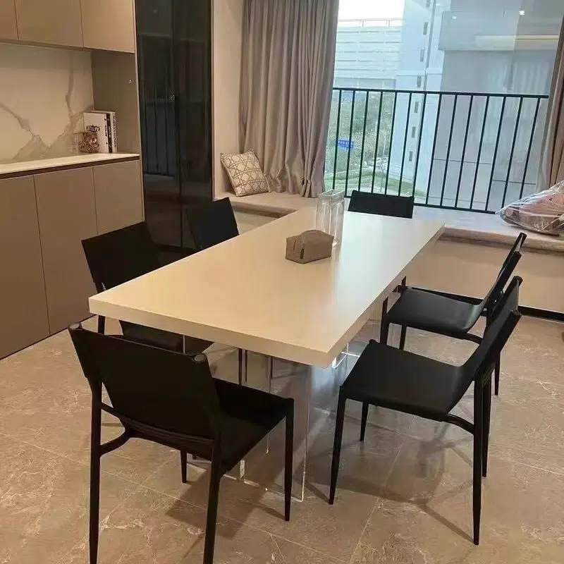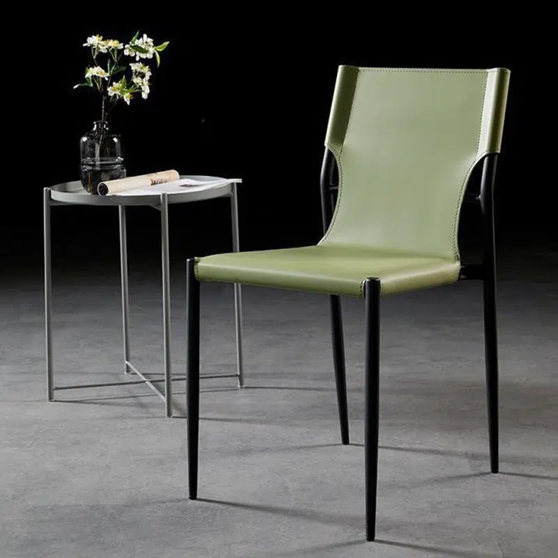 Contemporary Nordic Square Leather Carbon Steel Stackable Dining Chair Backrest For Dining Room
