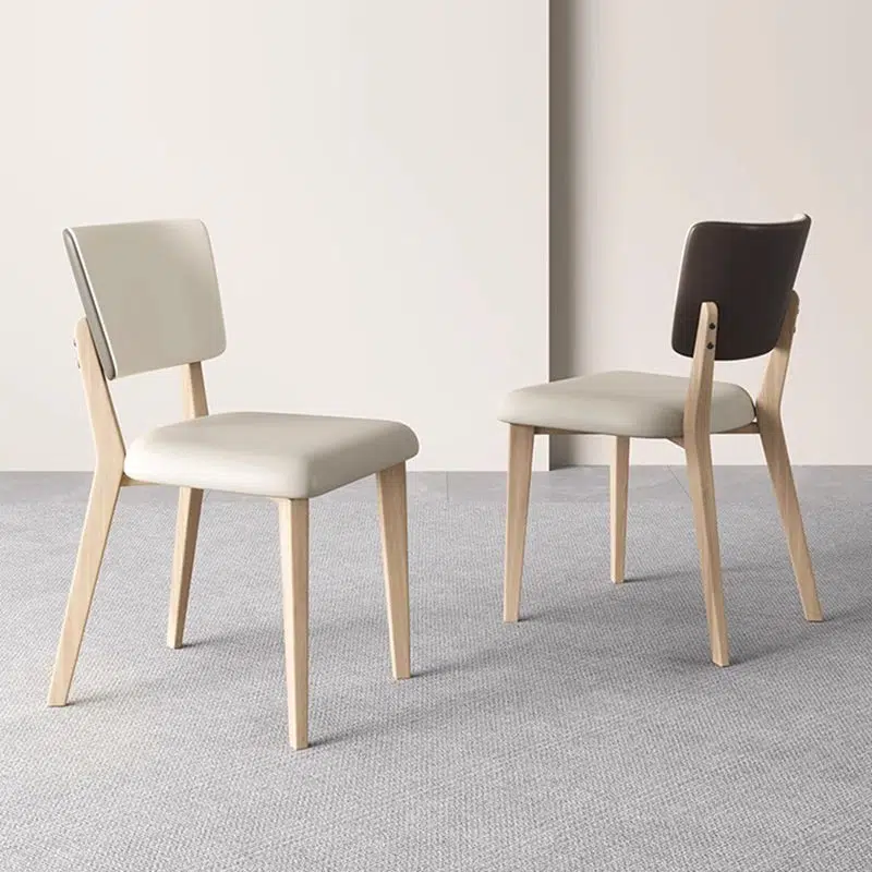 Contemporary Nordic Square Leather Solid Wood Frame Dining Chair Backrest For Dining Room