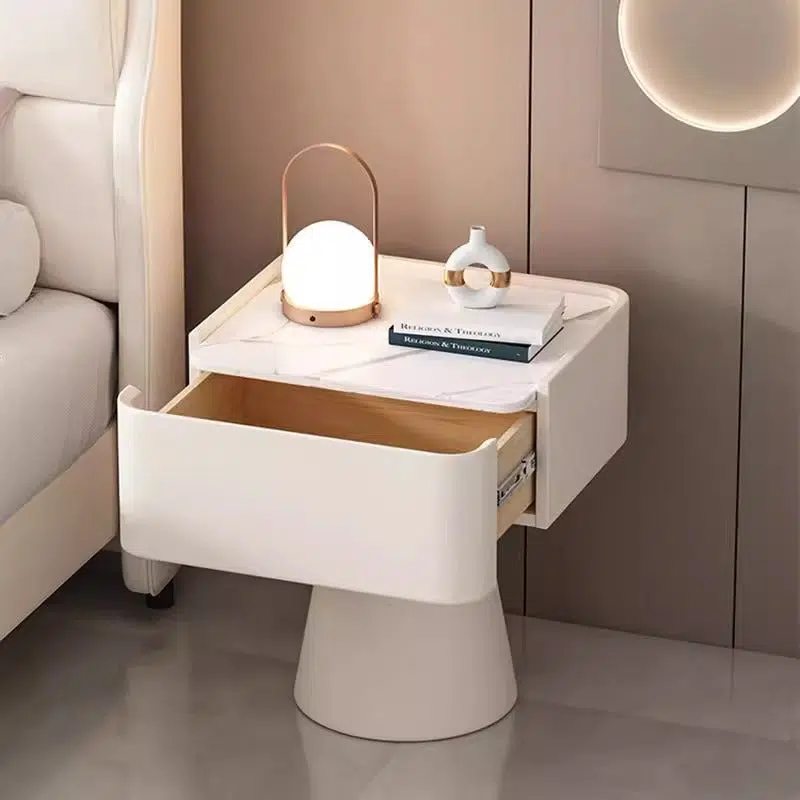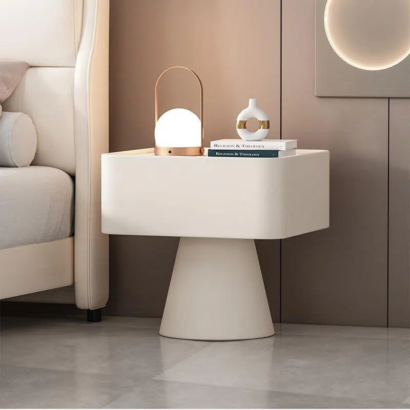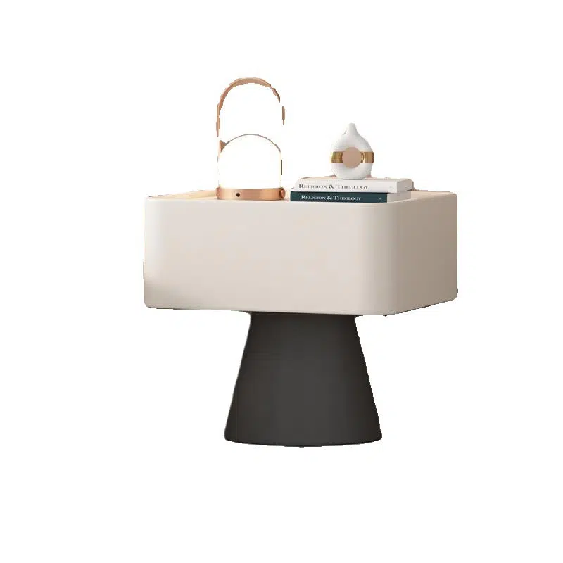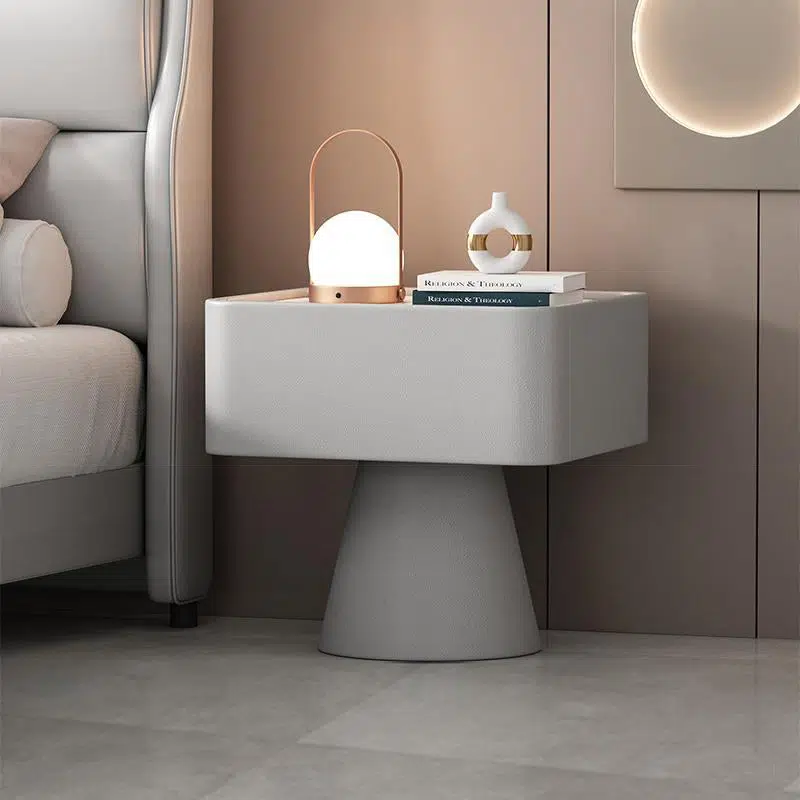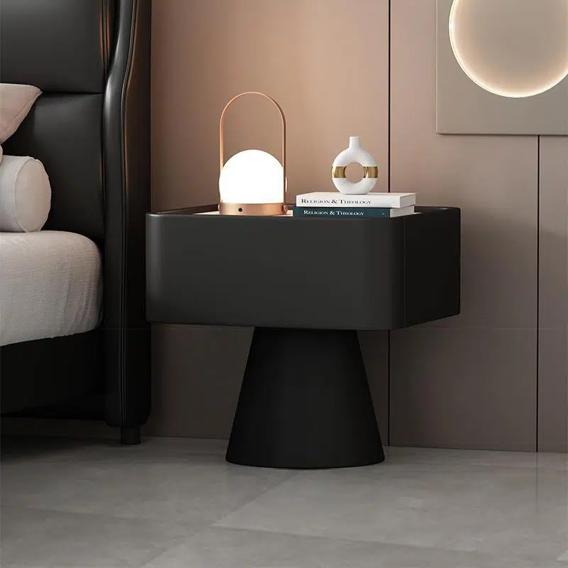 Contemporary Nordic Square Trapezoid Cube Rock Board Pine Leather Nightstand 1 – Drawer For Bedroom