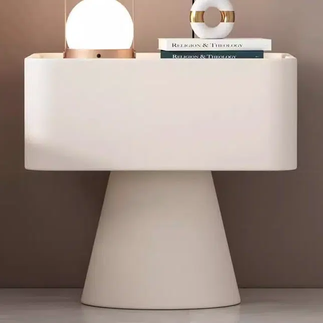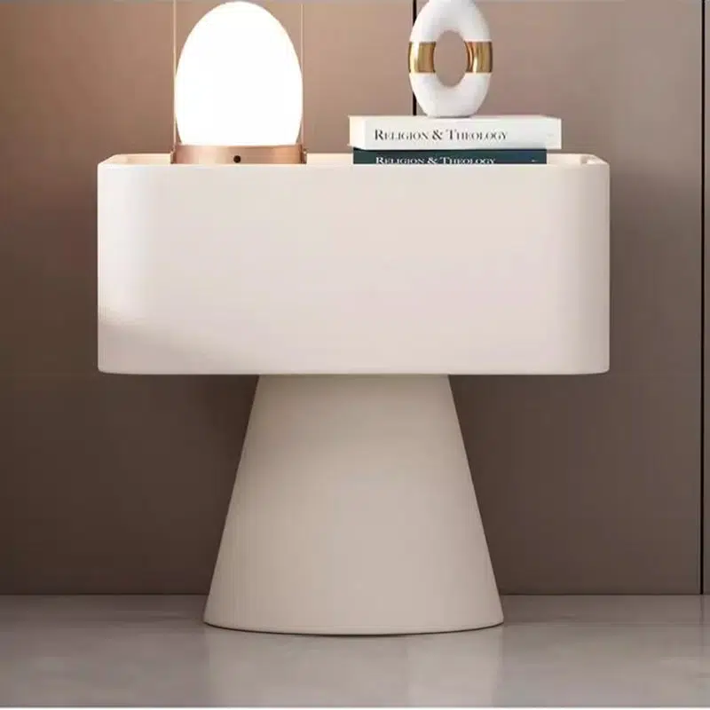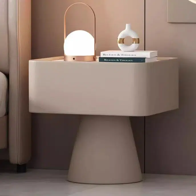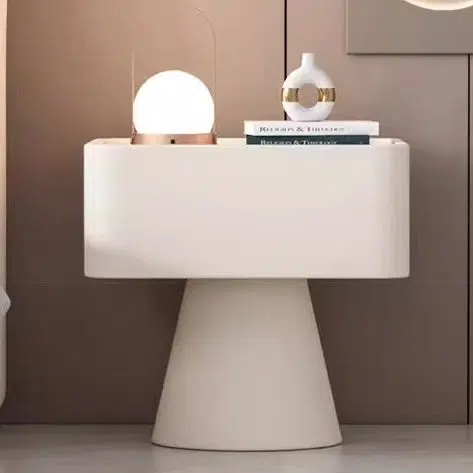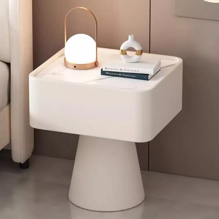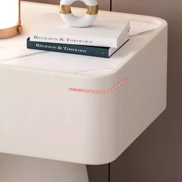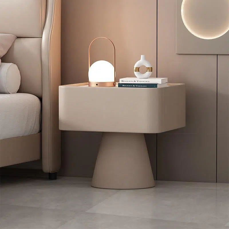 Contemporary Nordic Square Trapezoid Cube Rock Board Pine Leather Nightstand 1 – Drawer For Bedroom