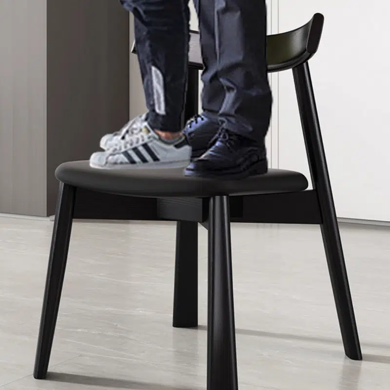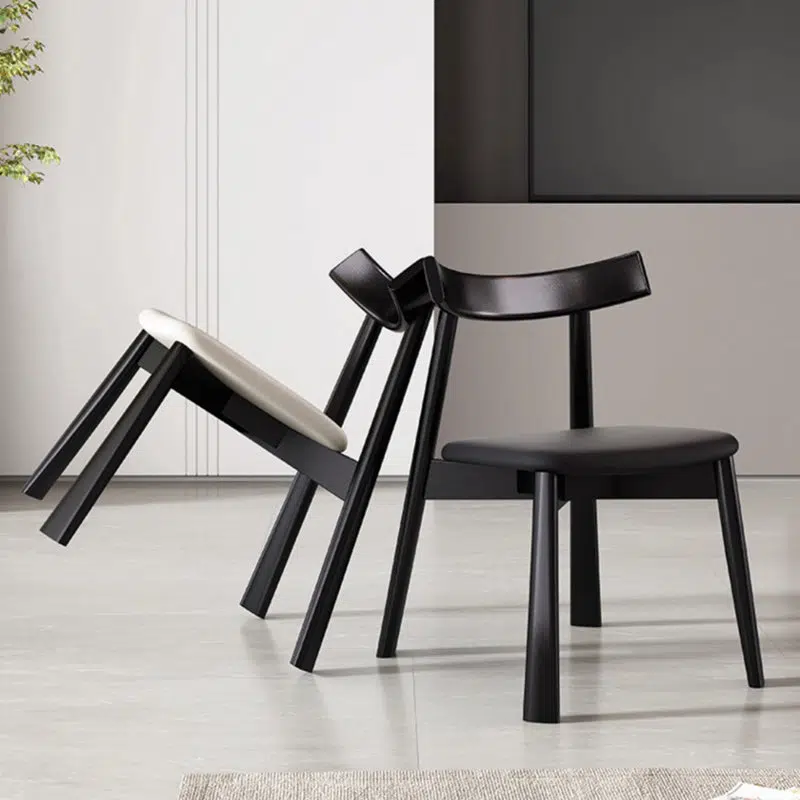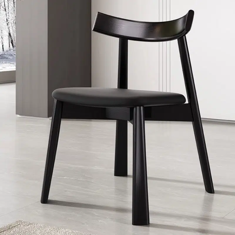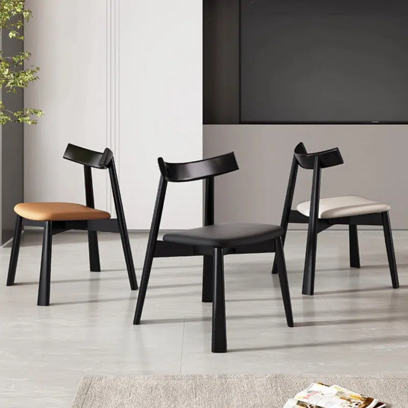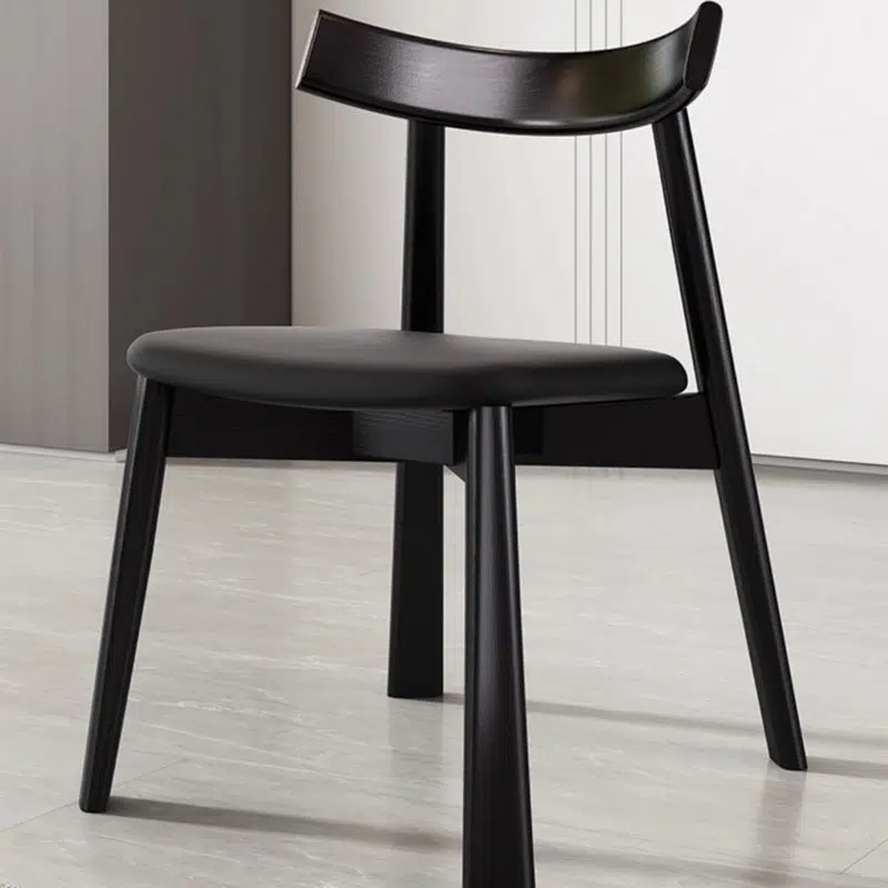 Contemporary Nordic Square Upholstered Curved Leather Wood Dining Chair Backrest For Dining Room