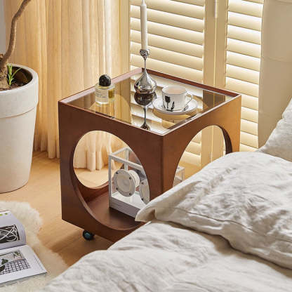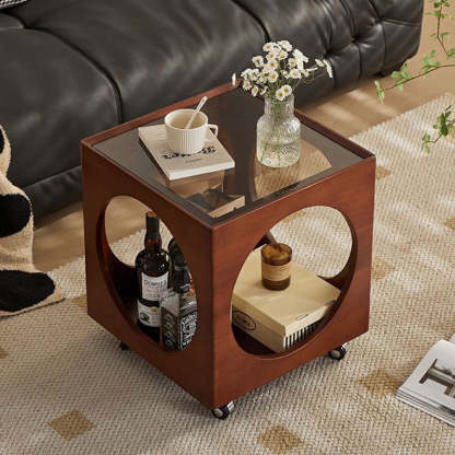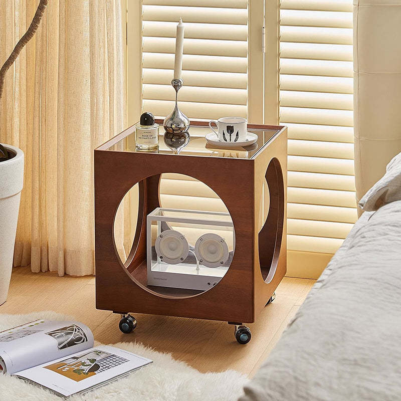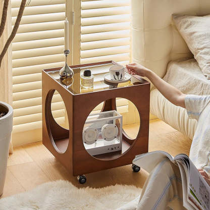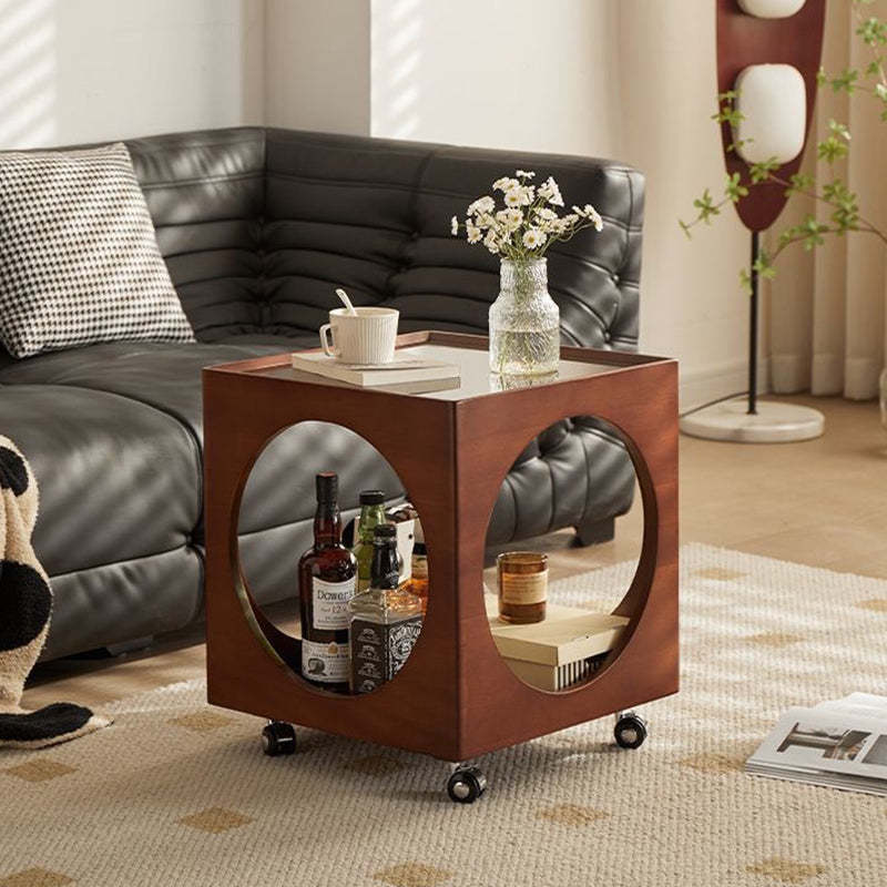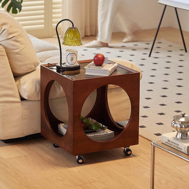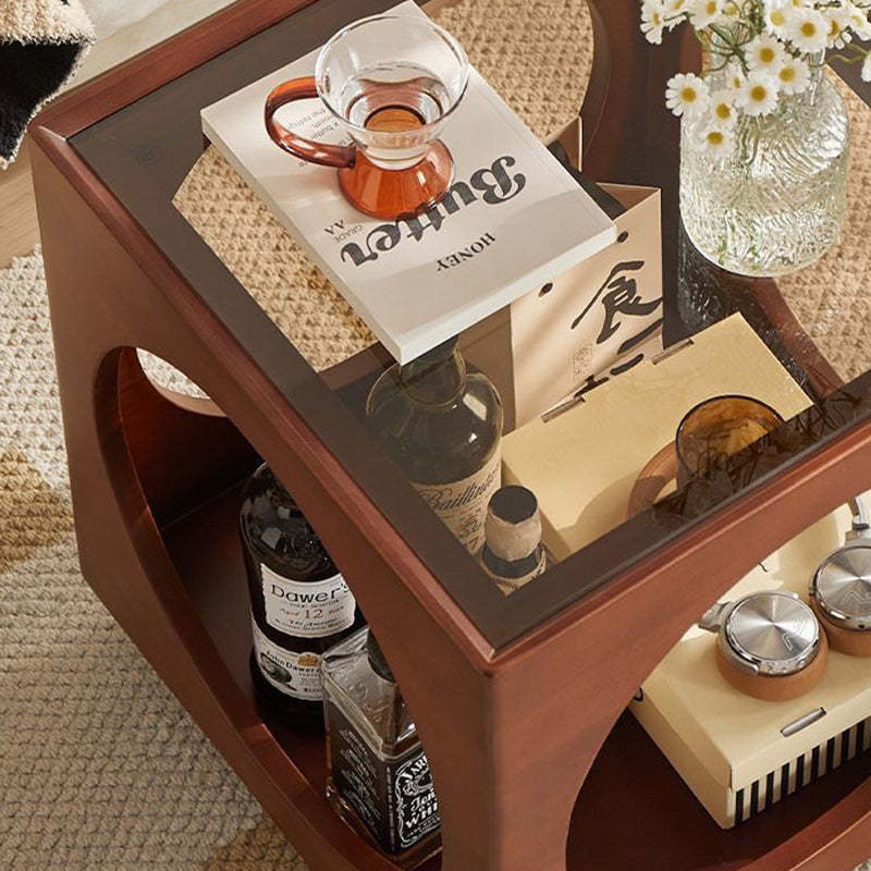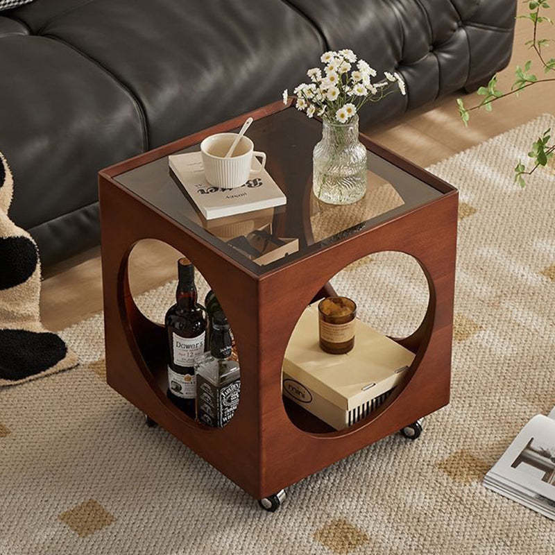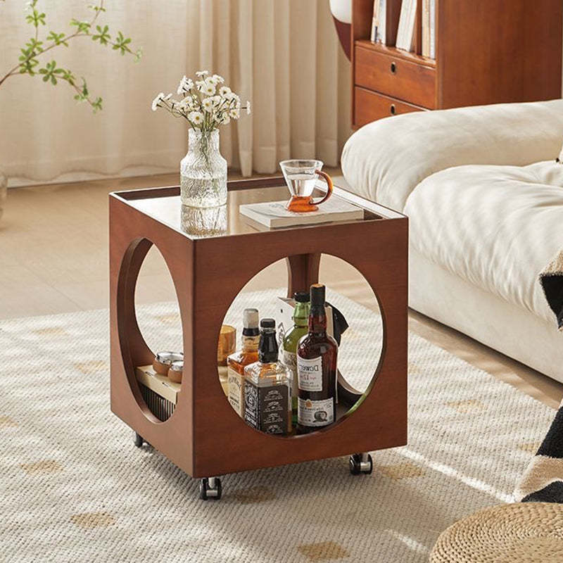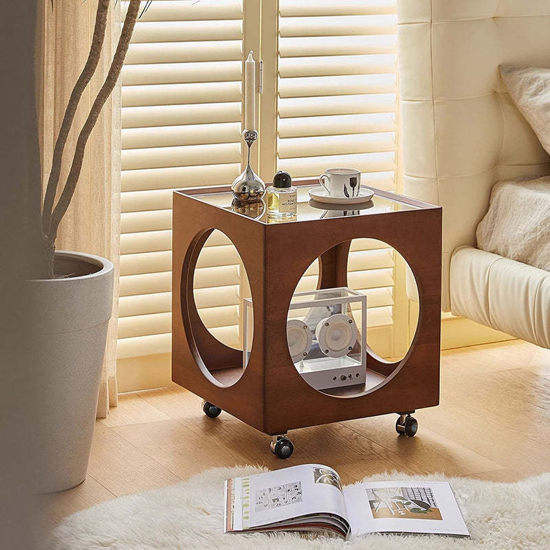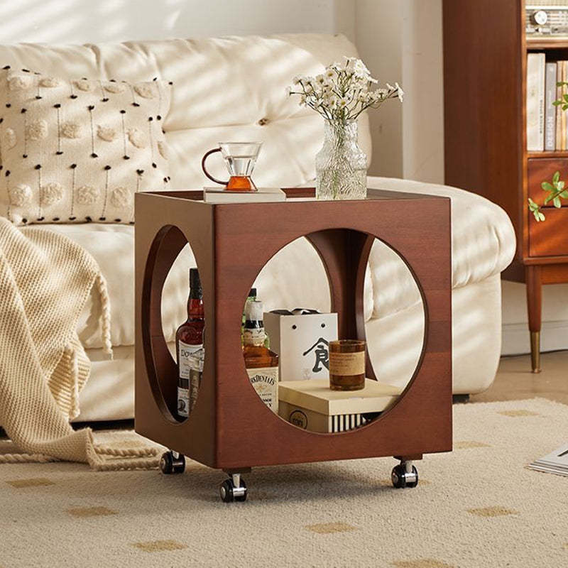 Contemporary Nordic Square Wood End Table 2-Tier For Living Room