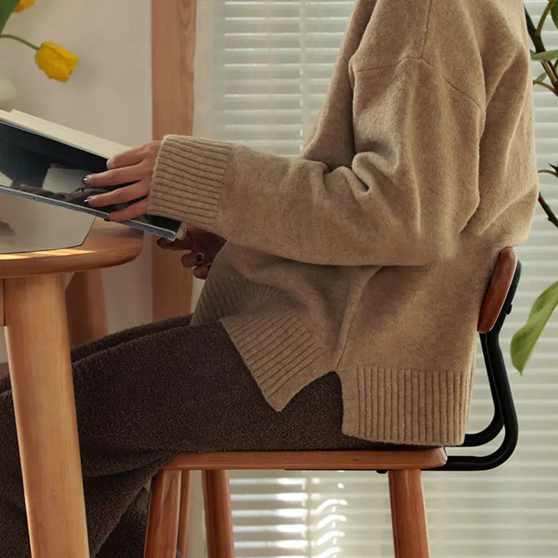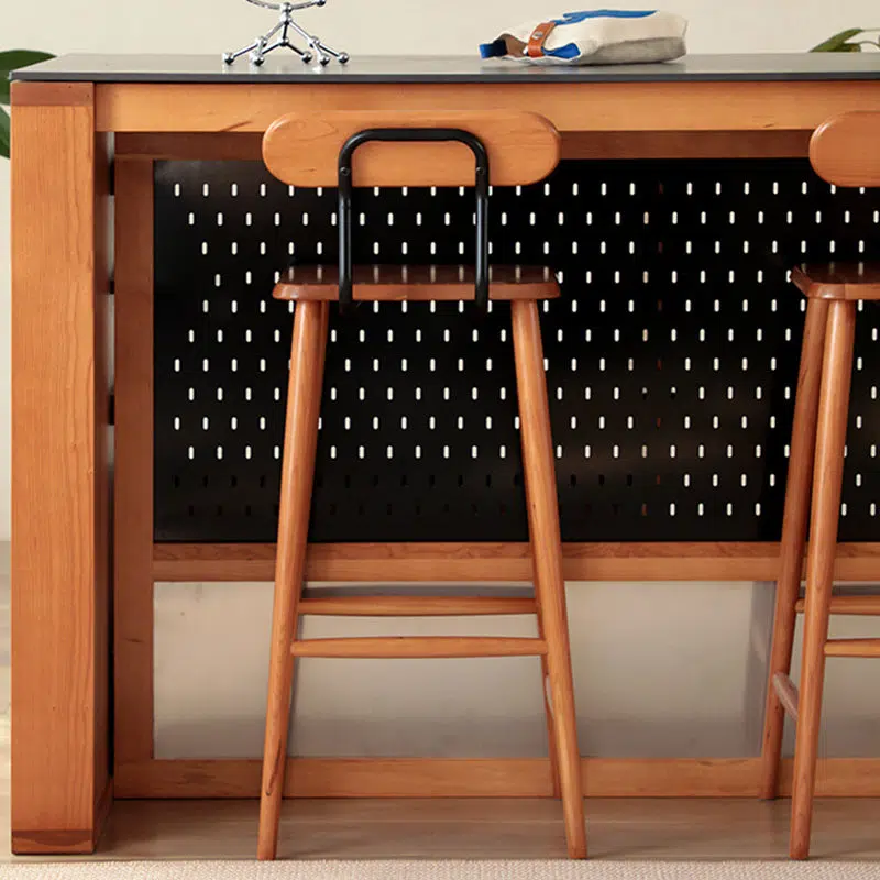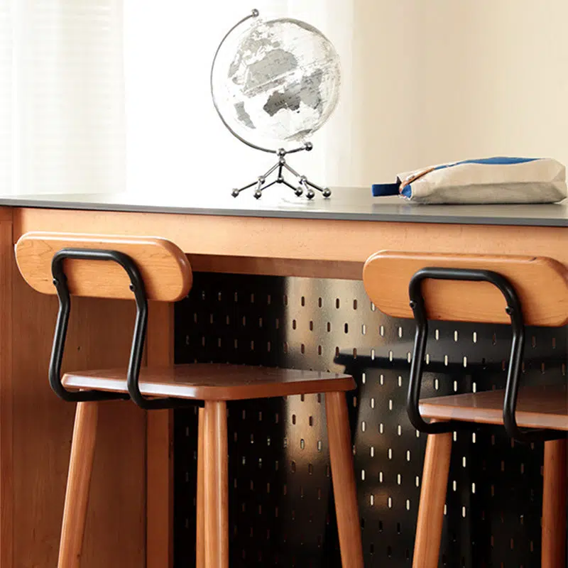 Contemporary Nordic Square Wood Iron Bar Stool Backrest Footrest For Dining Room