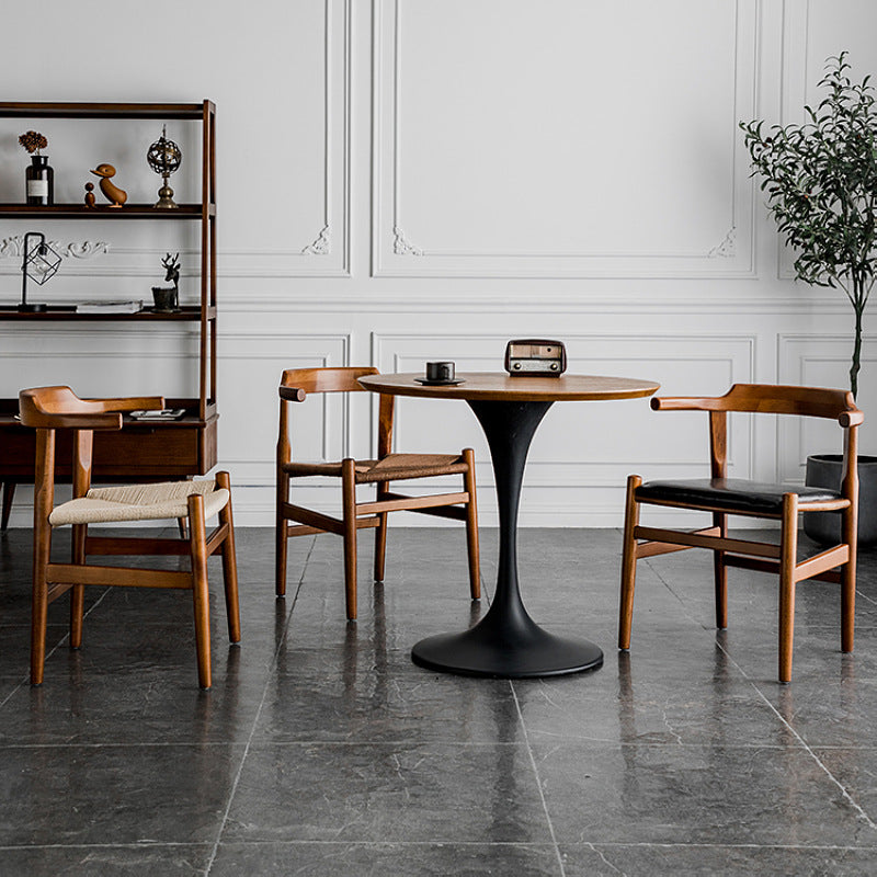 Contemporary Nordic Square Wood Rope Dining Chair Backrest Armrest For Dining Room