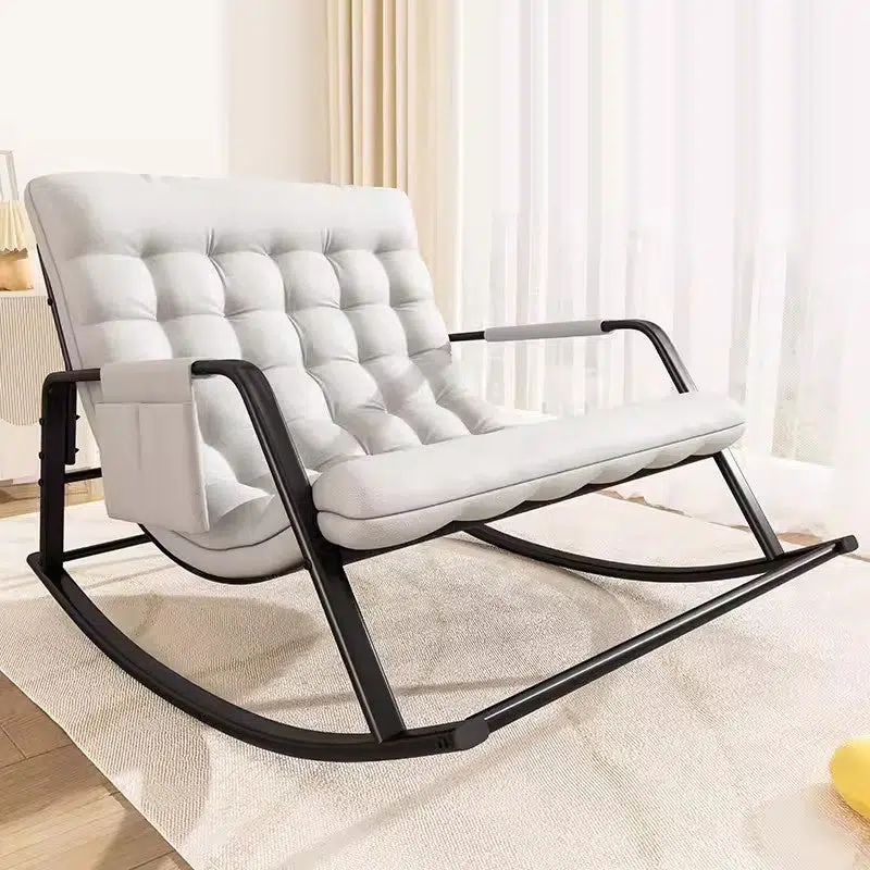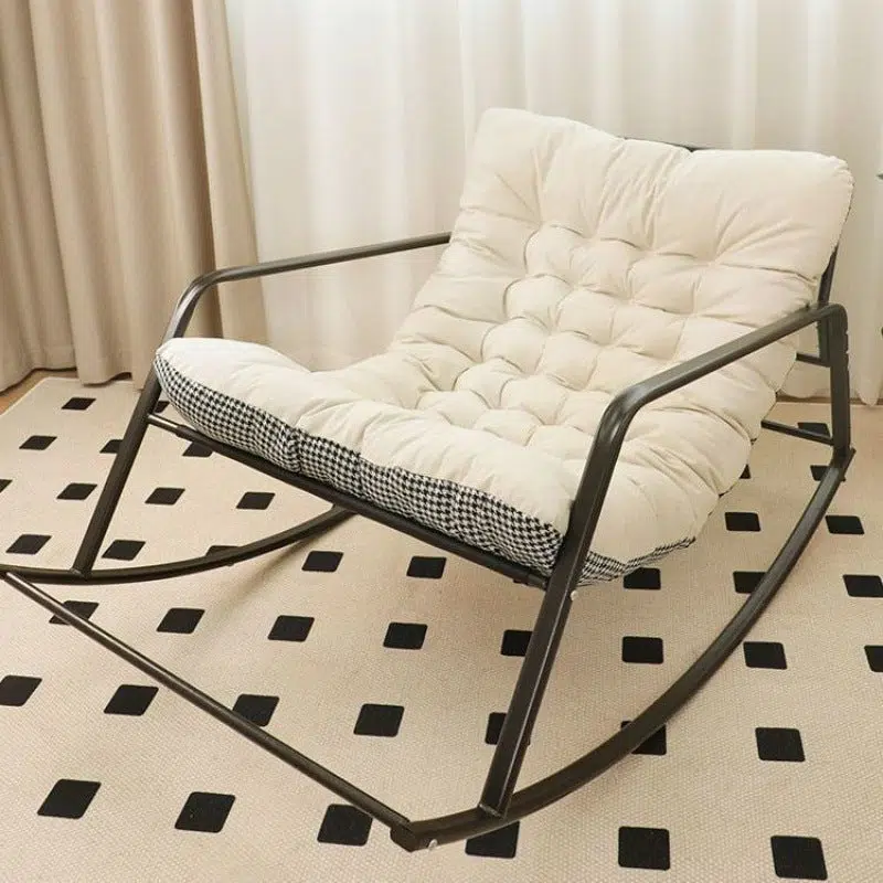 Contemporary Nordic Tech Fabric & Carbon Steel Moon Rocking Chair With Backrest & Armrests For Living Room & Bedroom