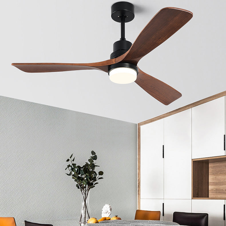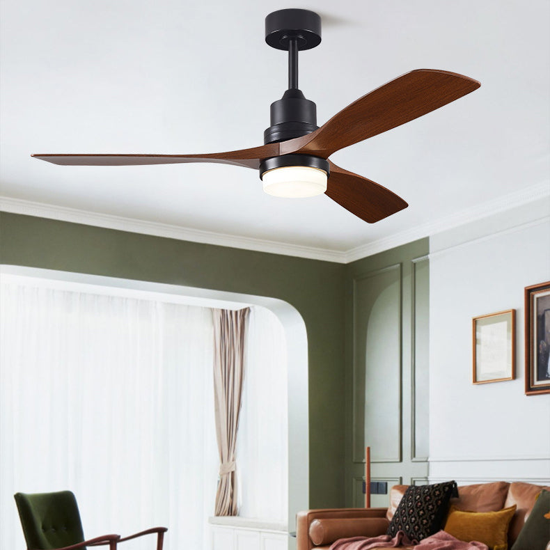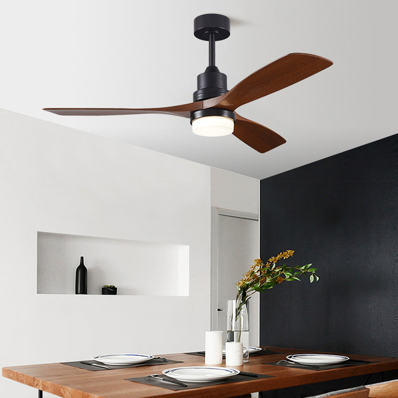 Contemporary Nordic Three Fan Blades Carbon Steel Solid Wood LED Downrods Ceiling Fan Light For Living Room