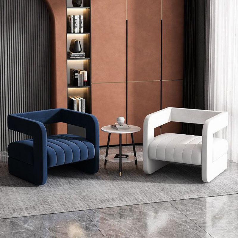 Contemporary Nordic Velvet & Metal Square Accent Chair For Bedroom & Living Room