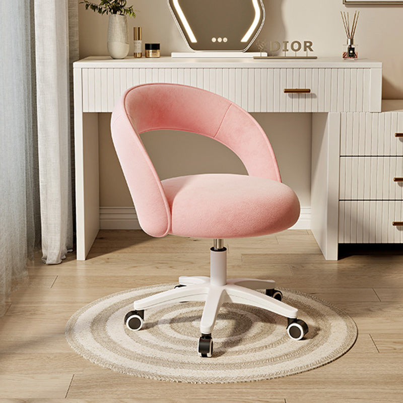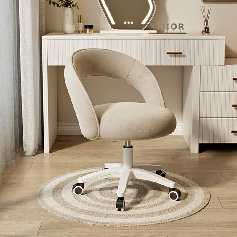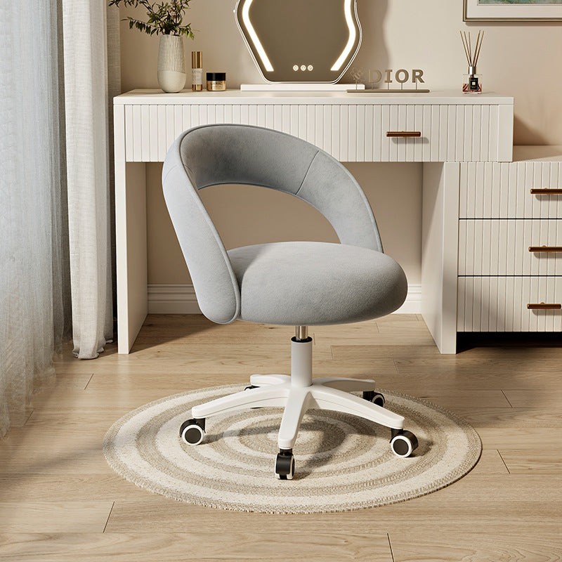 Crafted from soft velvet and durable nylon. this modern curved vanity stool offers swivel and height adjustment for all-day comfort. Available in white. gray. pink. green. and more??ideal for bedrooms. living rooms. or home office setups with a sleek Nordic aesthetic.