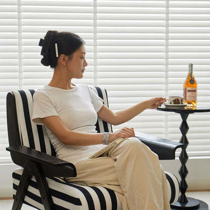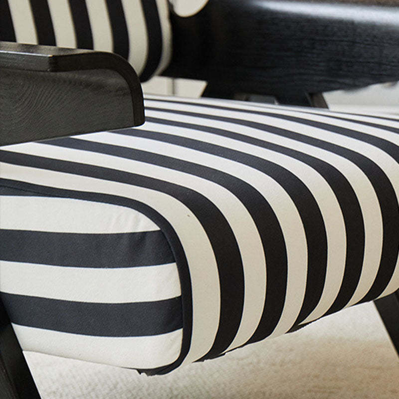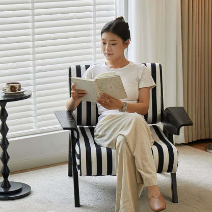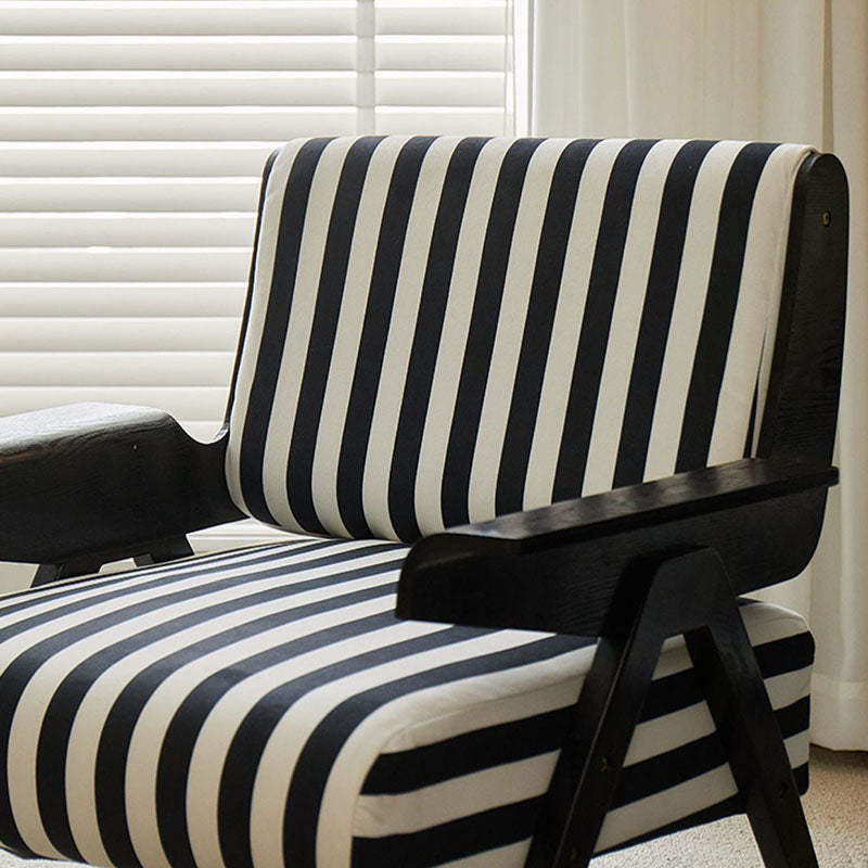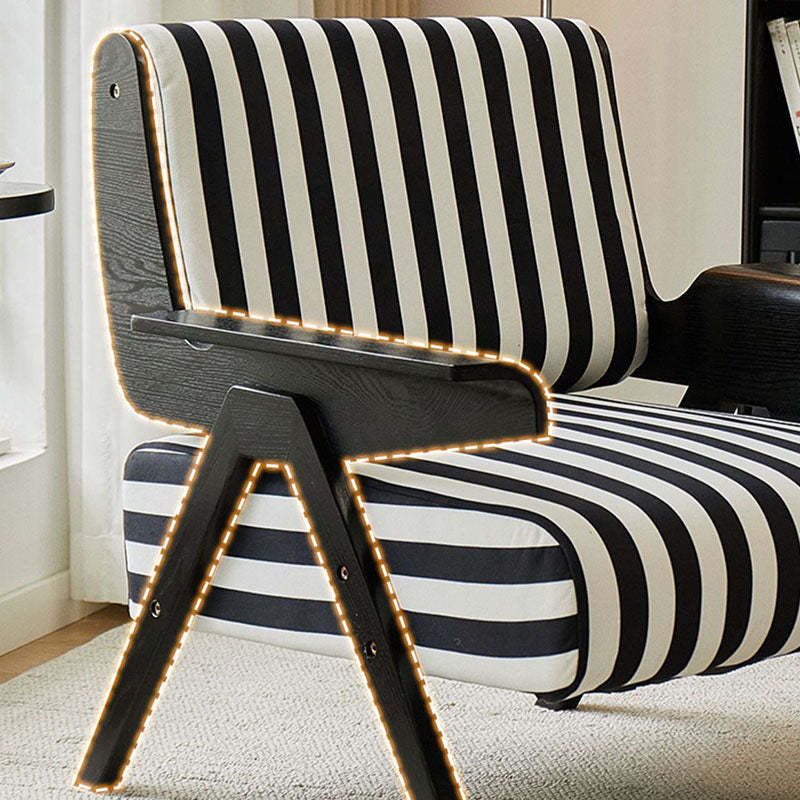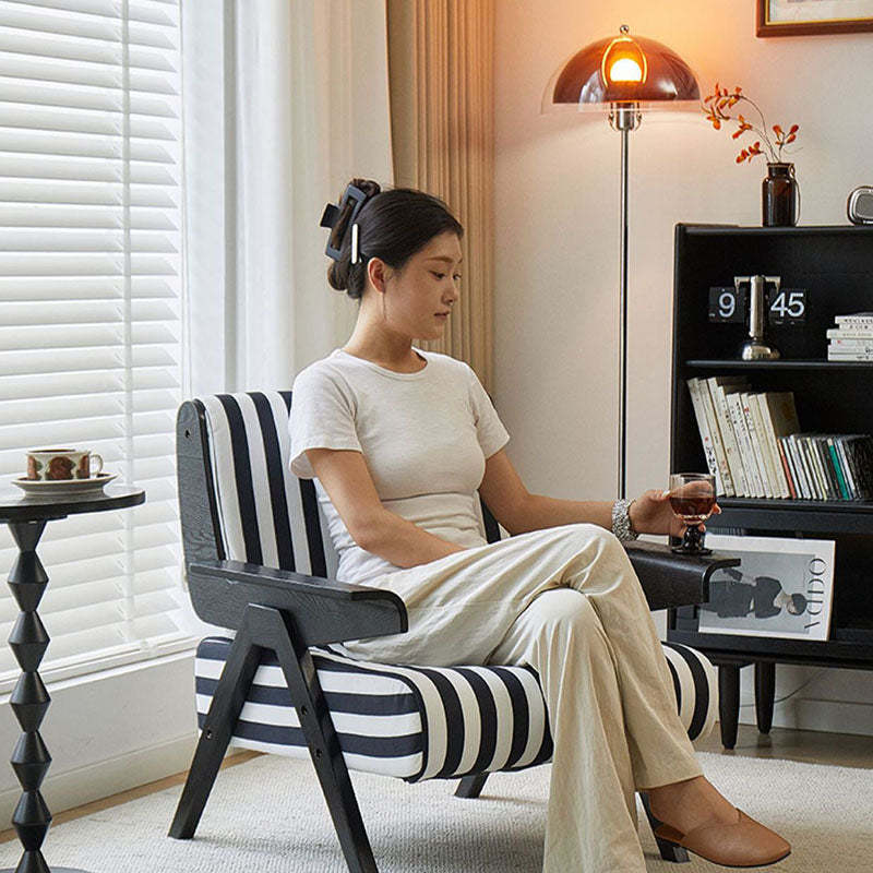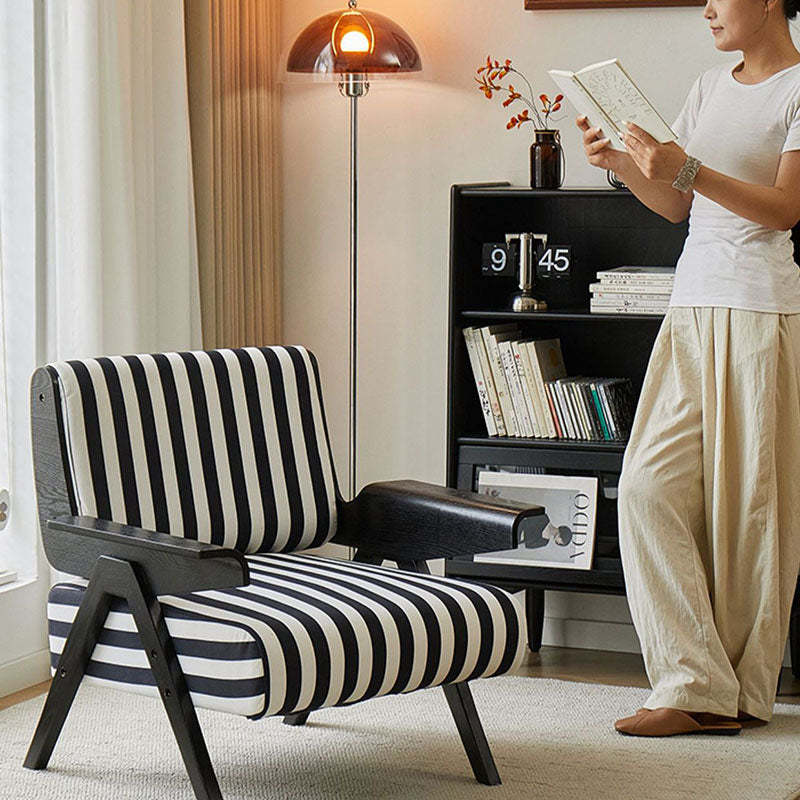 Add a modern touch to your home with this Nordic-style velvet accent chair. featuring a bold square shape and adjustable wooden legs for customizable comfort. Available in green and black-white stripes. it's perfect for small spaces in bedrooms or living rooms.