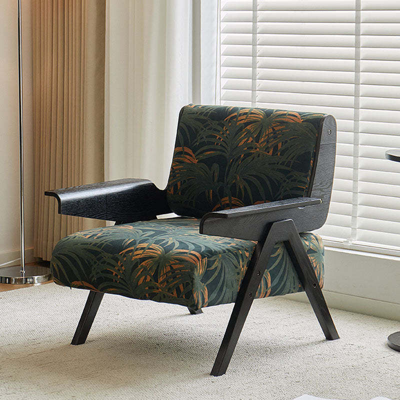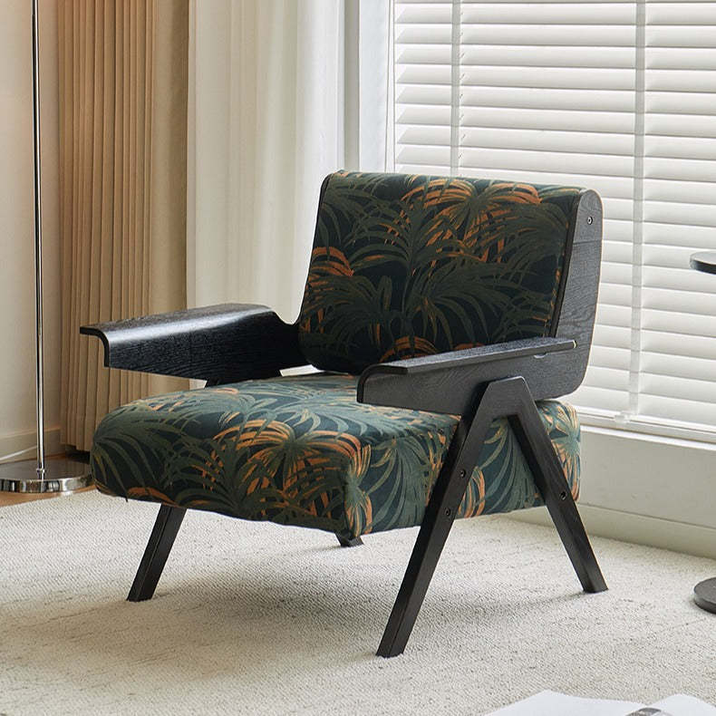 Contemporary Nordic Velvet & Wood Square Accent Chair With Adjustable Legs For Bedroom & Living Room