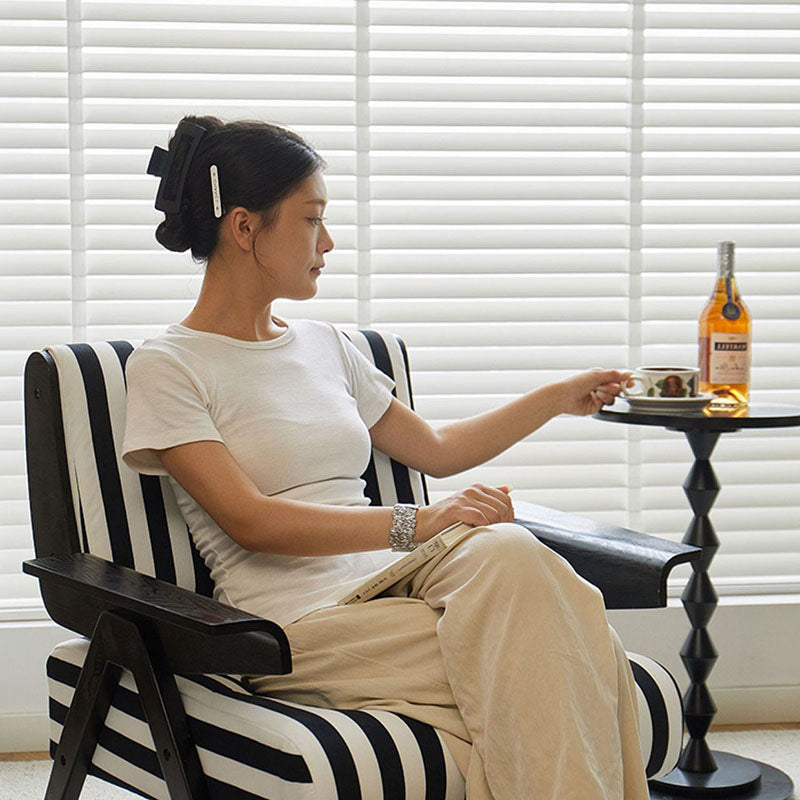 Add a modern touch to your home with this Nordic-style velvet accent chair. featuring a bold square shape and adjustable wooden legs for customizable comfort. Available in green and black-white stripes. it’s perfect for small spaces in bedrooms or living rooms.