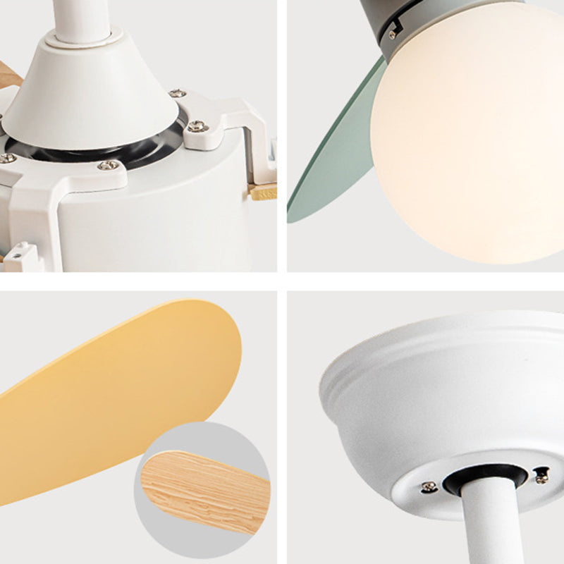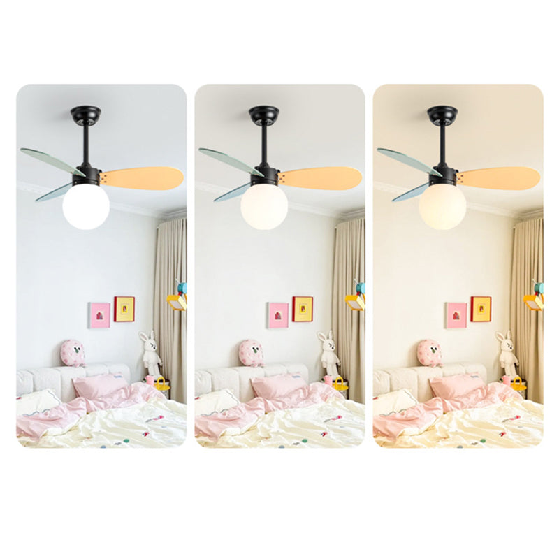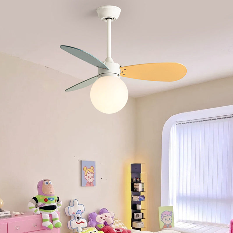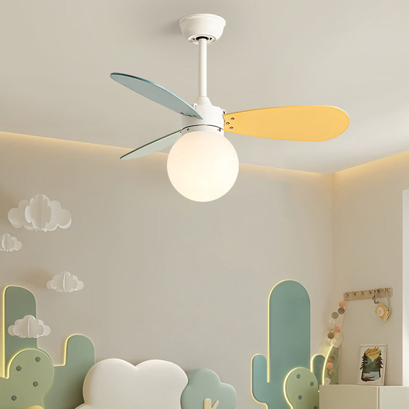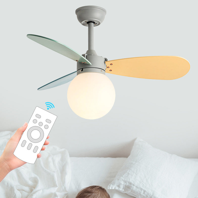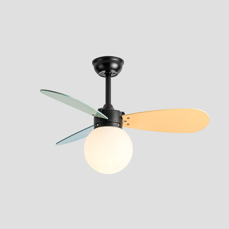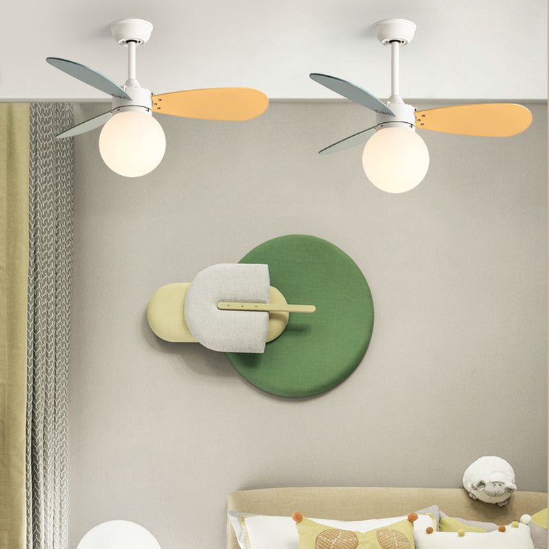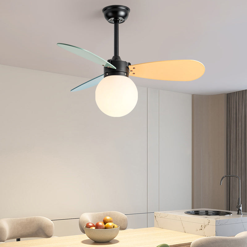Contemporary Nordic Wood Iron Acrylic Ball 1-Light Downrods Ceiling Fan Light For Bedroom