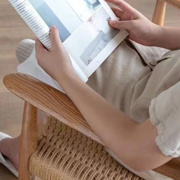 Crafted with durable mortise-and-tenon joints. this Nordic-style dining chair features solid wood construction. hand-woven rope seating. and a comfortable armrest and backrest design. Available in natural. cherry. walnut. and black finishes. it brings both stability and elegance to any dining space.