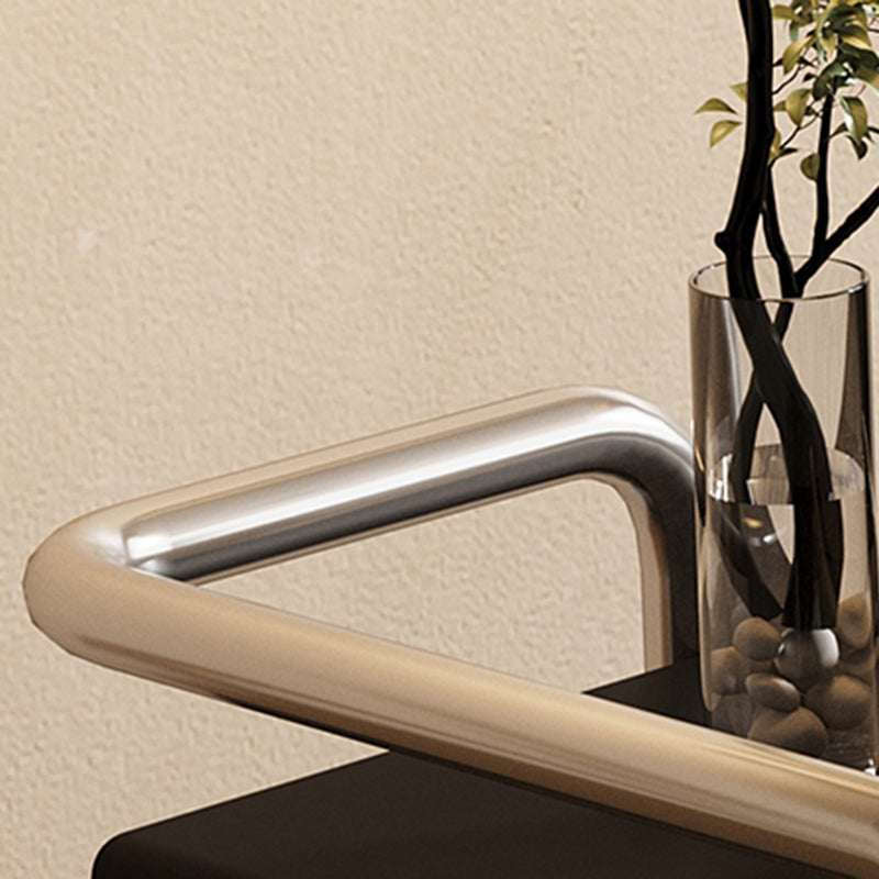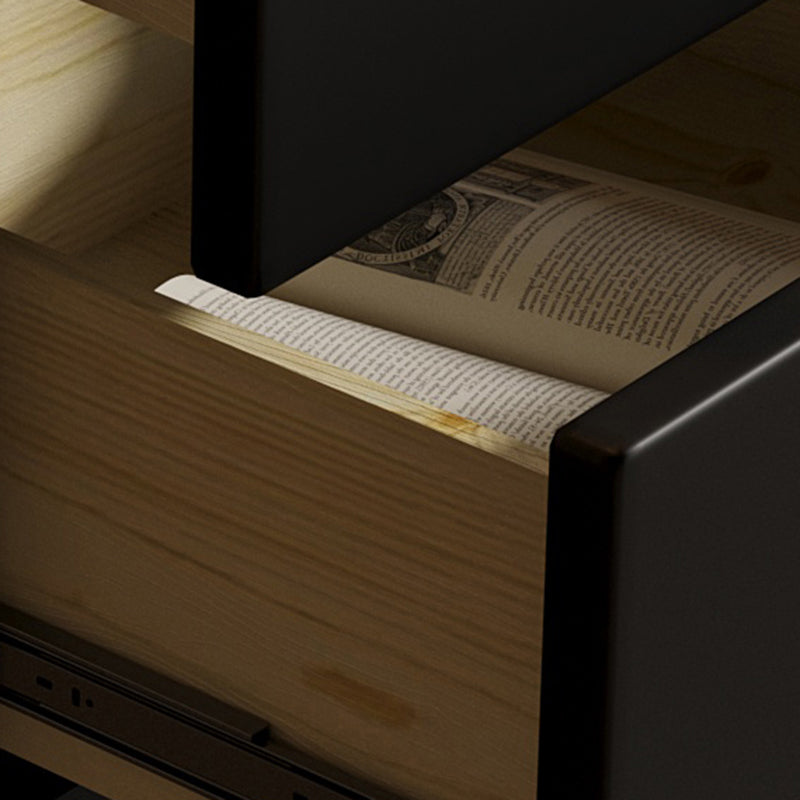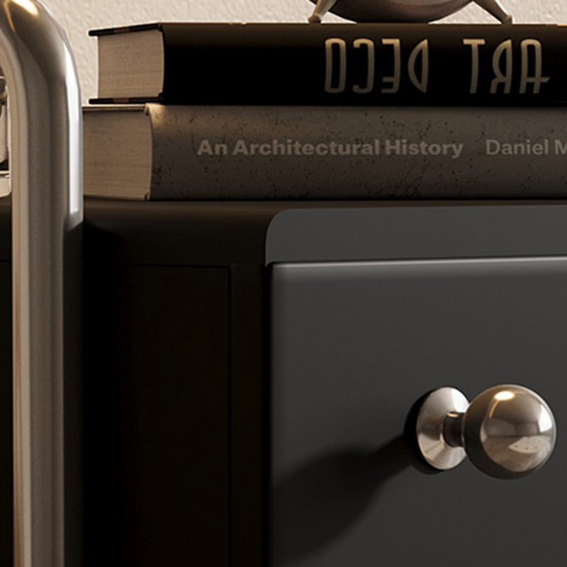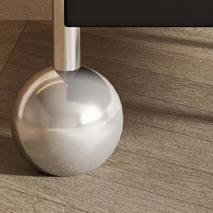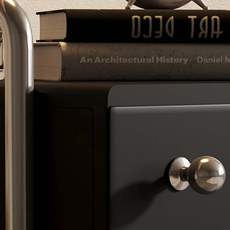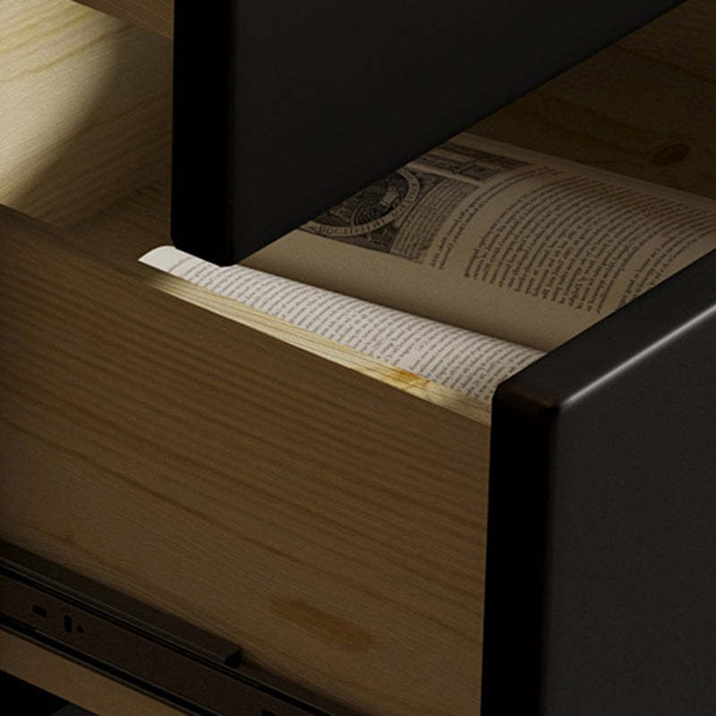 This modern Nordic nightstand features a sleek square design with two spacious drawers. crafted from wood and stainless steel in a bold black finish. Ideal for bedrooms or living rooms. it offers both style and practical storage.