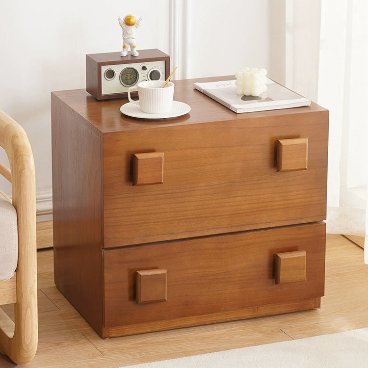 Contemporary Retro Cube Square Rubber Wood Nightstand 1-Drawer For Bedroom