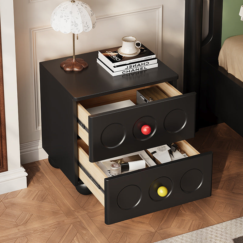 Contemporary Retro Cube Square Rubber Wood Nightstand 2 – Drawer For Bedroom