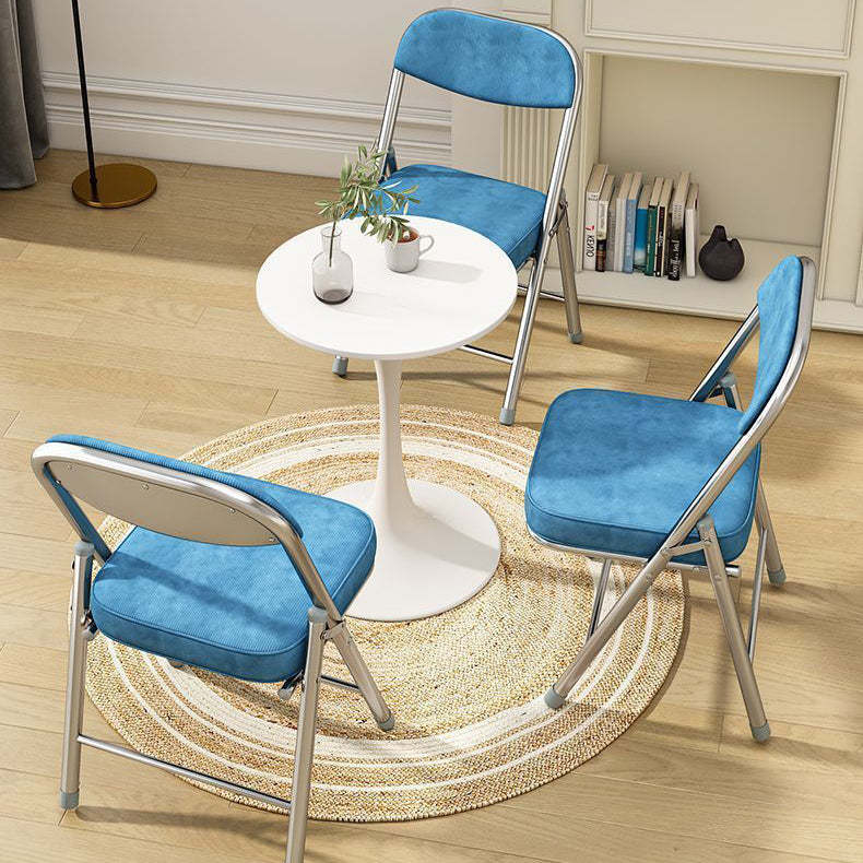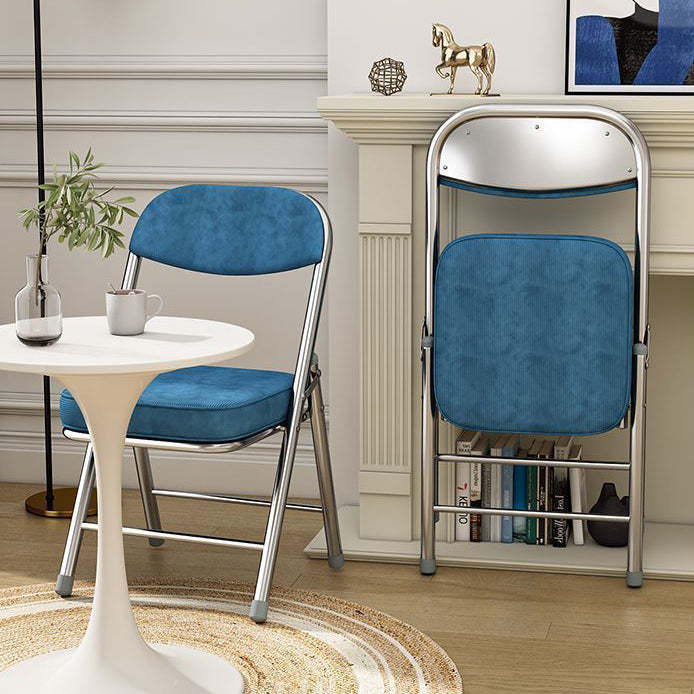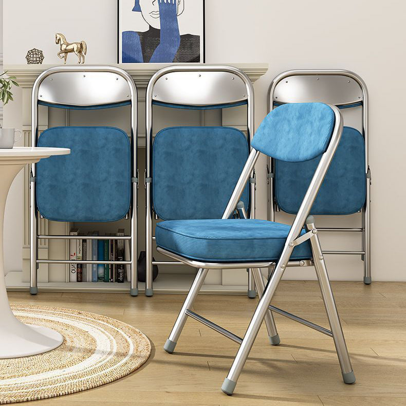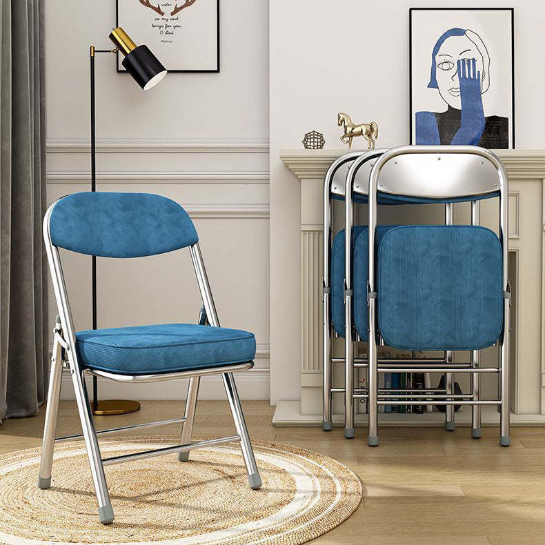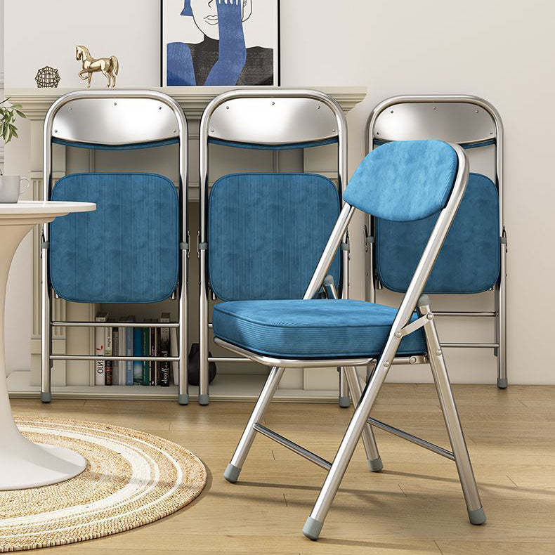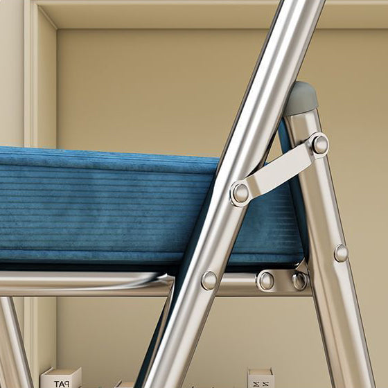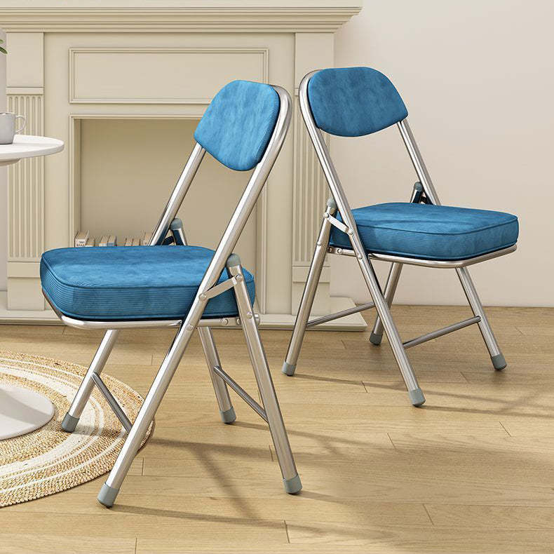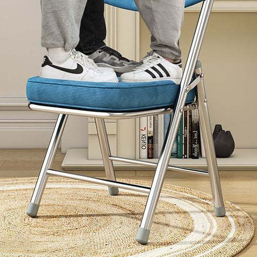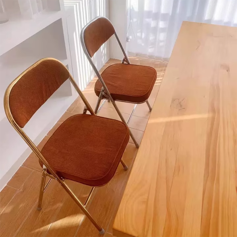 Contemporary Retro Foldable Corduroy Metal Square Desk Chair With Backrest For Study Or Home Office