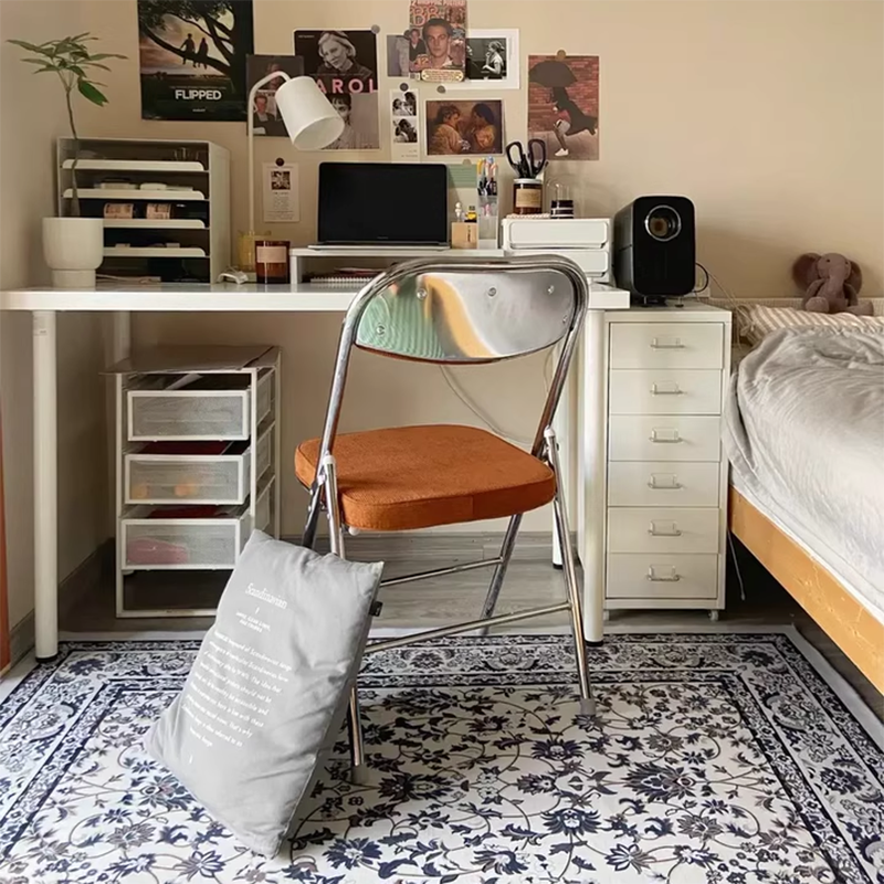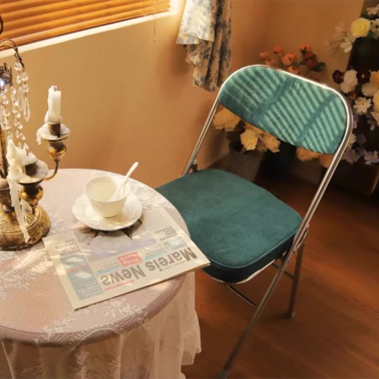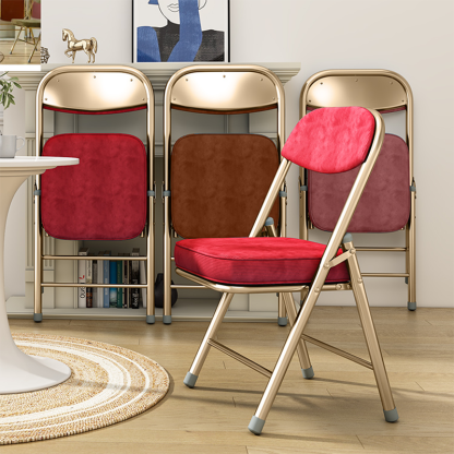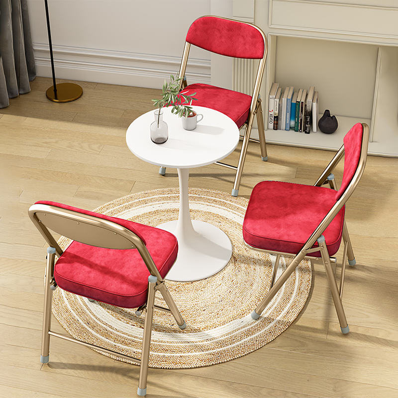 This foldable office chair combines retro charm with modern function. featuring a soft corduroy seat. supportive backrest. and sleek electroplated metal frame. Available in pink. red. blue. and brown. it requires no installation and folds easily for space-saving storage��perfect for offices. study rooms. or compact living areas.