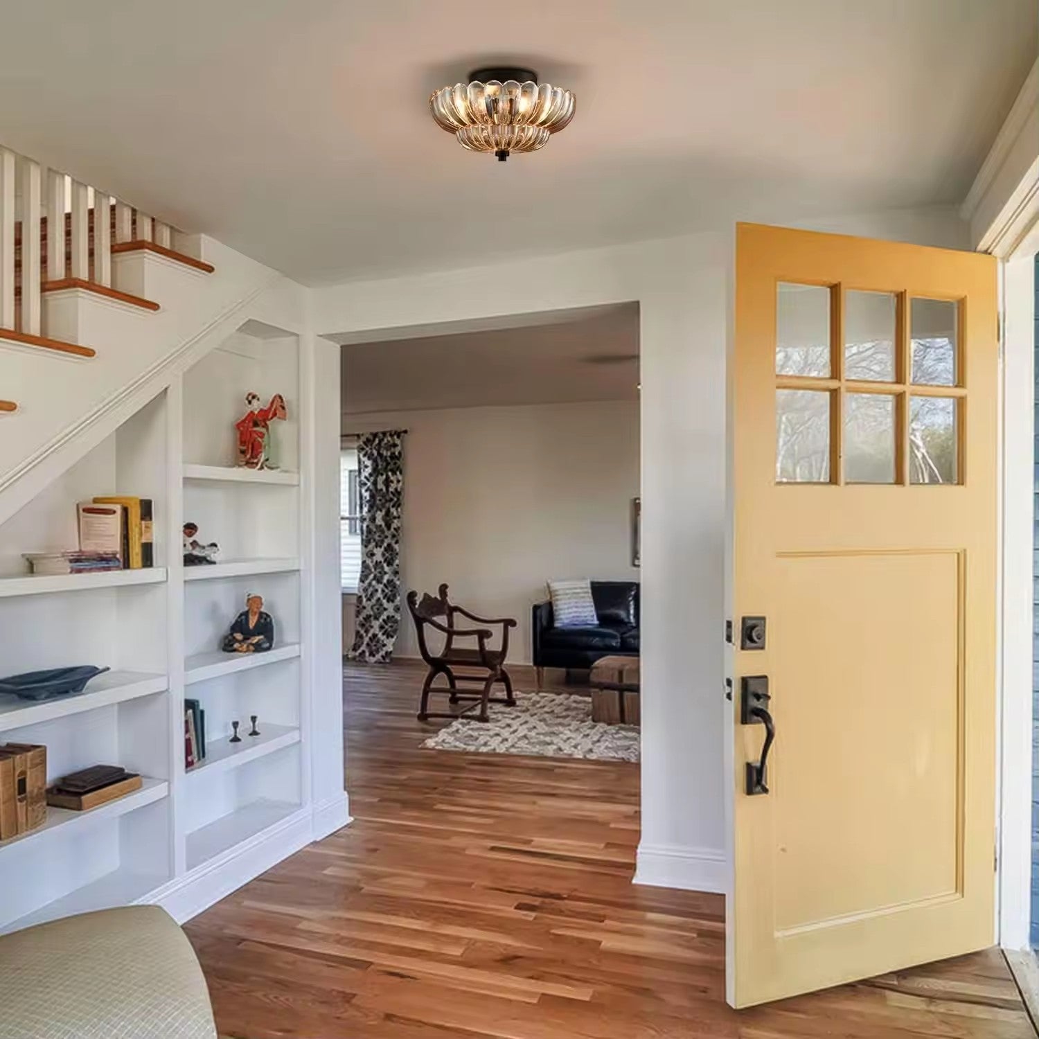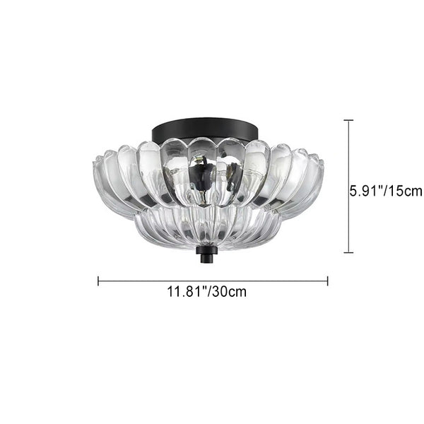 Contemporary Retro Glass Iron Floral Petal 3-Light Semi-Flush Mount Ceiling Light For Hallway