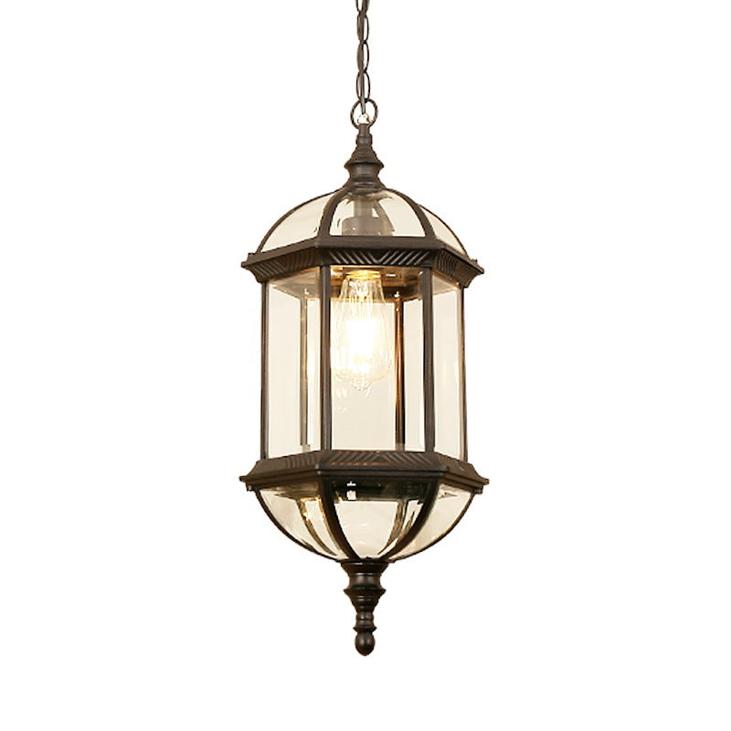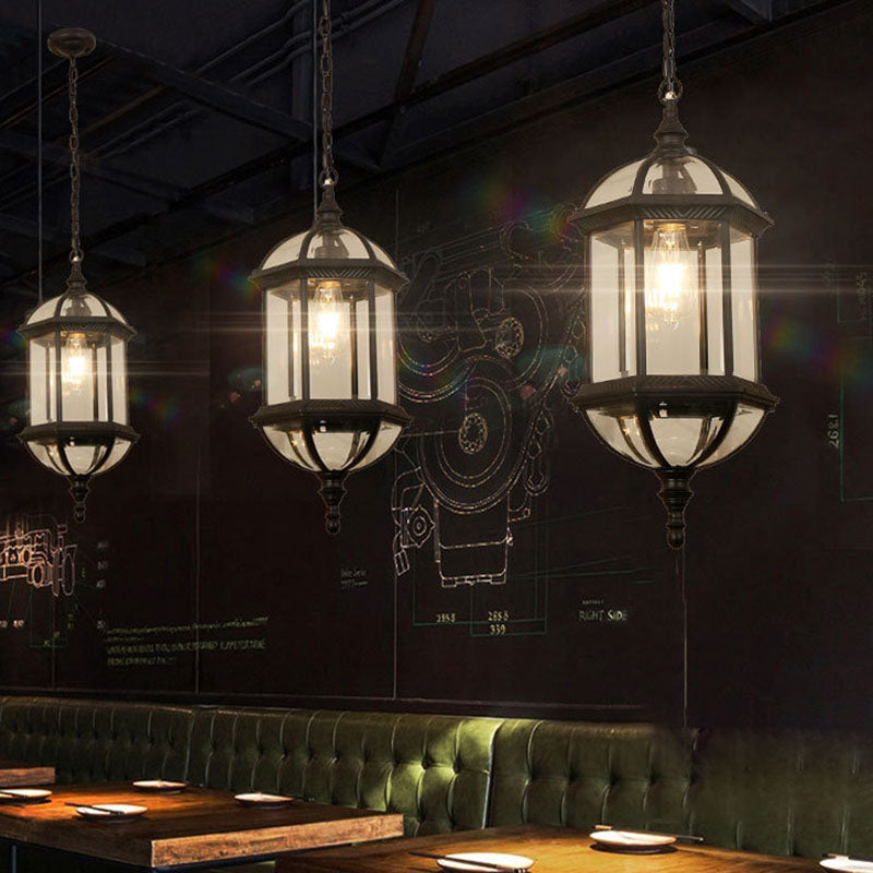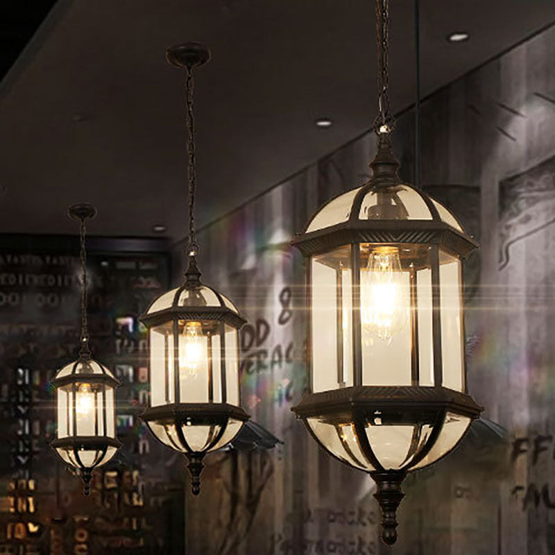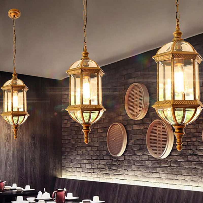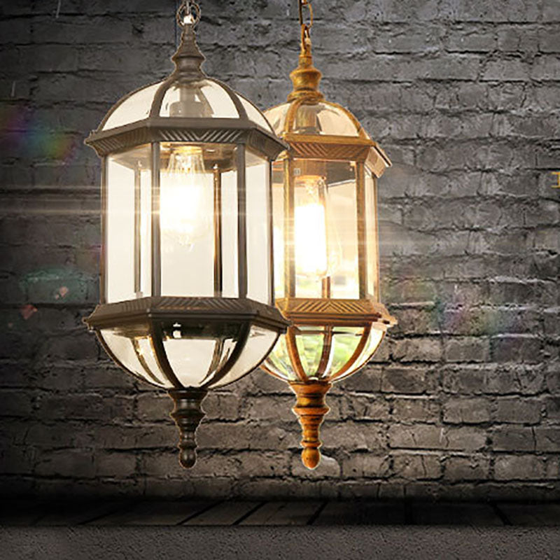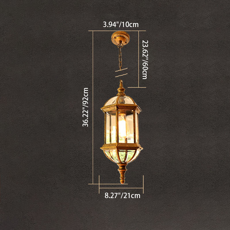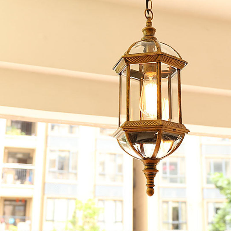 Contemporary Retro Hexagonal Lantern Glass Aluminum 1-Light Waterproof Pendant Light For Outdoor Patio
