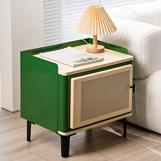 Contemporary Retro Rectangular Cold Rolled Plate Galvanized Perforated Panel Nightstand 1-Storage For Bedroom