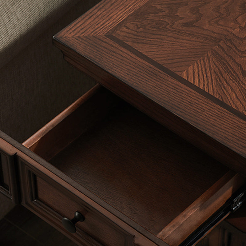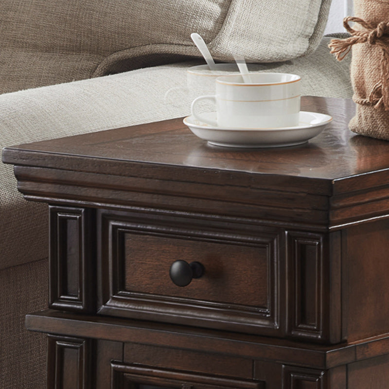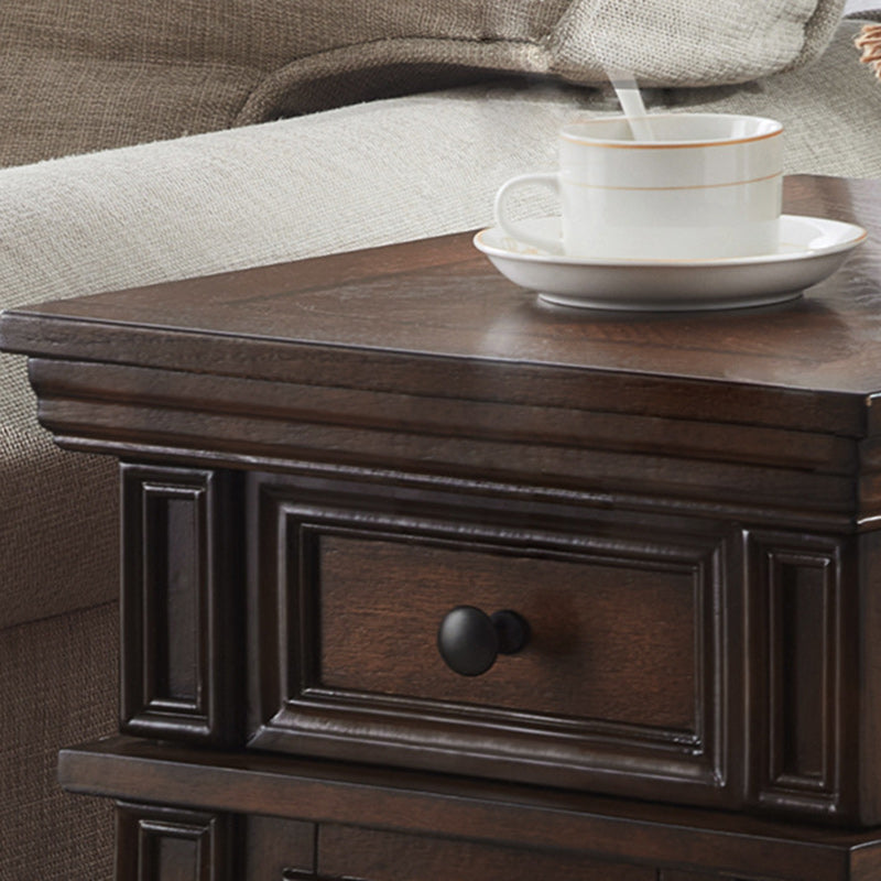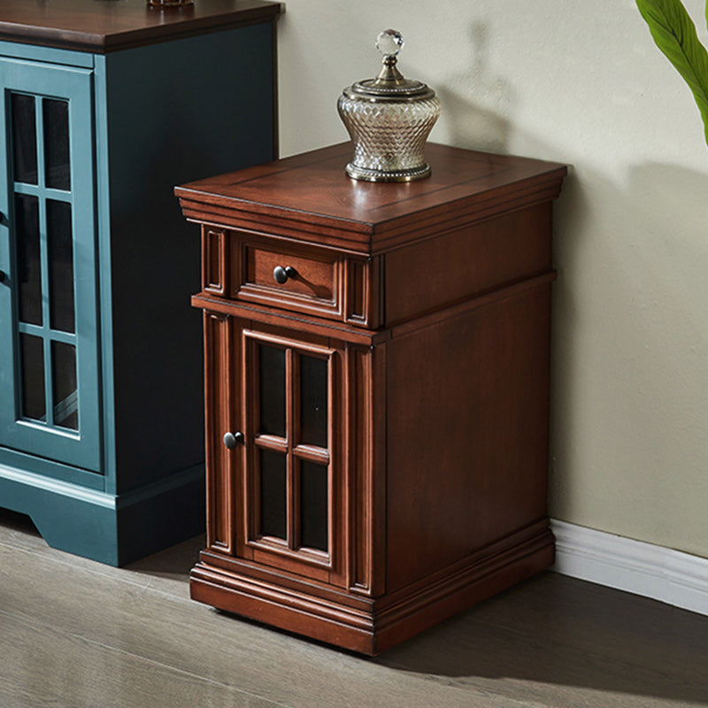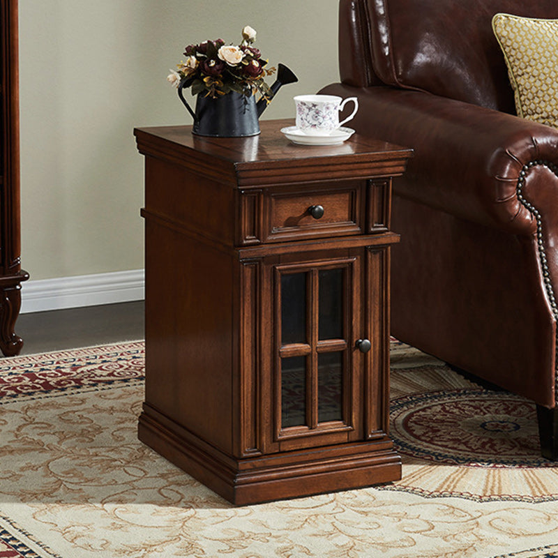 Contemporary Retro Rectangular Rubber Wood Fiberboard Metal Side Table 1-Drawer Cabinet For Bedroom