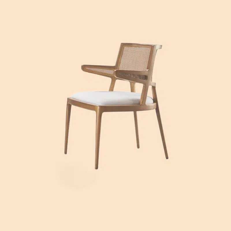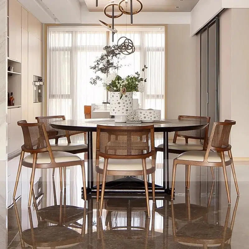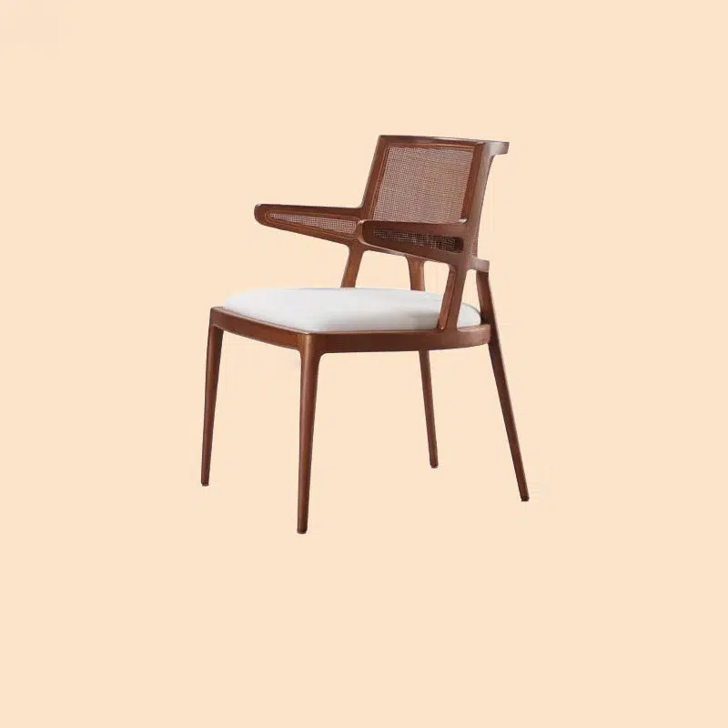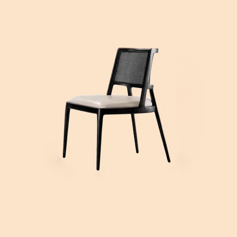 Contemporary Retro Square Microfiber Leather Upholstered Wood Dining Chair Rattan Backrest For Dining Room